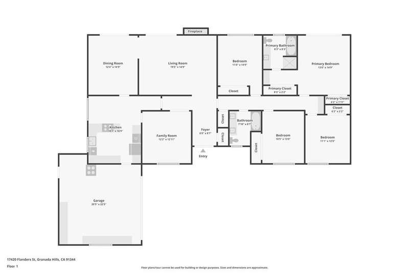 Located in Prime north of Rinaldi neighborhood of Granada Hills, this home offers ton of potential. Features include 4 bedrooms, 2 full baths with over 2100 sqft of living space, large living room with gas fireplace, formal dining room, kitchen features a breakfast nook, family room/den leads you to the massive back yard just under 15,000 sqft with covered patio and multiple fruit trees. Huge drive way leads you to the two car attached garage with direct access to the house. Just minutes to the freeways and a 10 minute drive to the Vineyards at Porter Ranch.