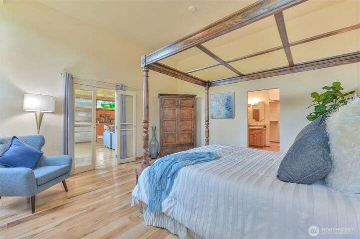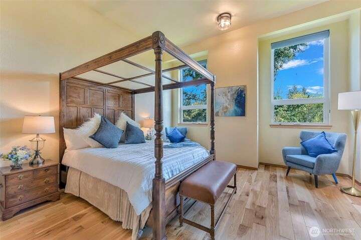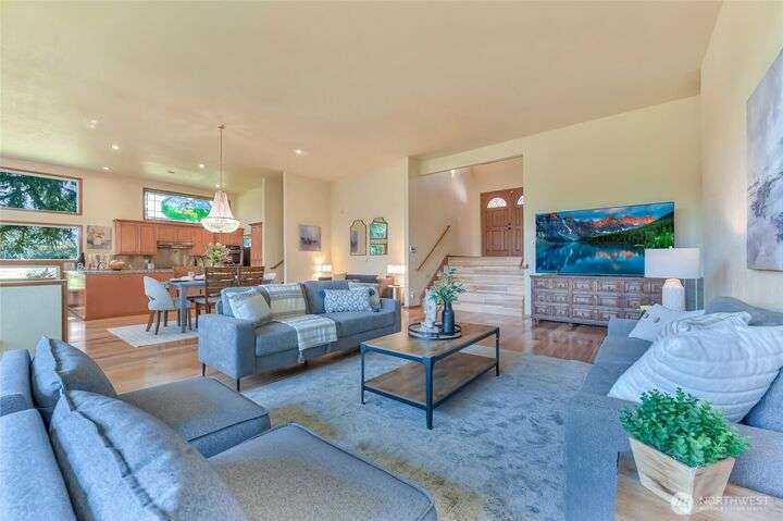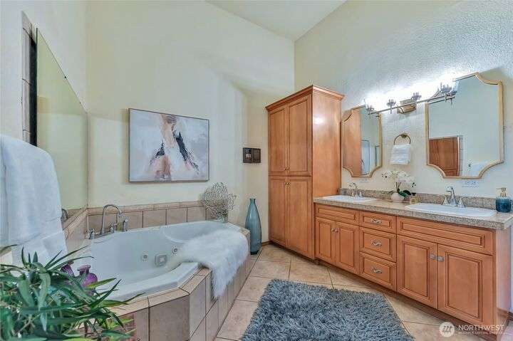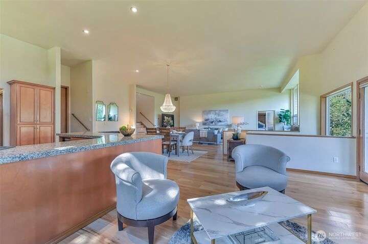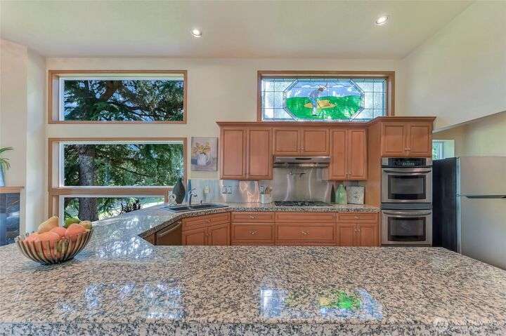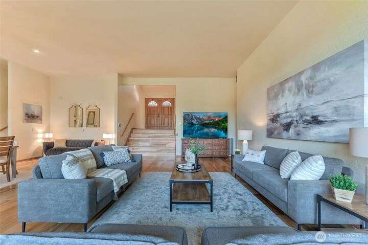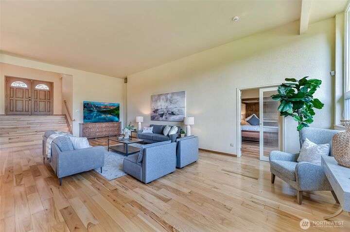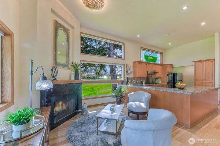 Pristine NW Architectural Designed 5-bedrooms 4-bathroom Property In Twin Lakes Most Sought After Neighborhood. Pride of ownership is found throughout. Towering Great Room with sky-high ceilings encompasses the vast living/dining & sitting rooms. Splendid tiled fireplace/banks of windows & quiet privacy. Chef super- sized, appointed kitchen, upgraded stainless steel appliances, double-oven, massive granite island. Primary suite handles your largest of furniture, luxurious 5-piece bath, personal washer/dryer utility. Upstairs 2 spacious guest rooms share full sized private bath. Lower level has Bonus Rm/wood mantled fireplace/wet bar/2 bedrooms/full bath & utility. Home sits privately off the 16th green, 2 large covered decks, huge garage!