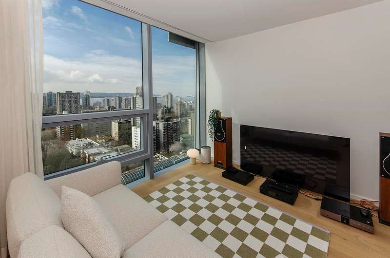 Alberni By Kengo Kuma, near waterfront Coal Harbour neighborhood. Centrally located with walking distance to the best restaurants, luxury brand name stores and boutiques. Water & city view 2 bedrooms and a den and 2 full bathrooms. Unit features with Miele appliances, SS splashback in kitchen, heated mirror in bathrooms, electric auto window coverings, covered balcony off master bedroom. Exclusive building recreations include exercise room, indoor pool and sauna, music room, kids playroom and outdoor playground, wine storage. Must see to appreciate.