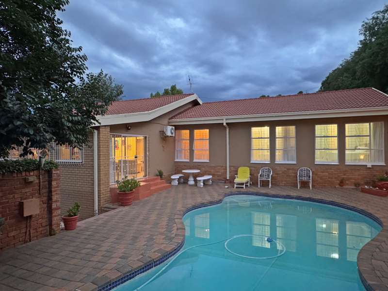 This well-maintained property in Hillsboro is a must-see, offering incredible value for its price! Designed for comfortable living and entertaining, this home boasts a spacious living room that flows seamlessly into an entertainment room complete with a built-in bar and an additional TV lounge—perfect for hosting friends and family. The dining room is conveniently located near the well-equipped kitchen, which offers ample cupboard space for all your storage needs. The house features four generously sized bedrooms, including a master suite with an en-suite bathroom, while a second bathroom serves the rest of the home. Step outside, and you'll be greeted by a stunning outdoor space featuring a sparkling blue granite swimming pool and a built-in braai area—ideal for weekend gatherings. Additional features include two storage rooms, staff toilets, and two garages with electric doors. With prepaid water and electricity, this home offers both convenience and affordability. A little TLC will turn this property into an absolute gem—you won’t find another deal like this in the north! Perfectly situated near Preller Walk, Northridge Mall, Willem Postma Primary, and Sentraal High School, this home is in an ideal location for families. Call Johann today for a viewing!