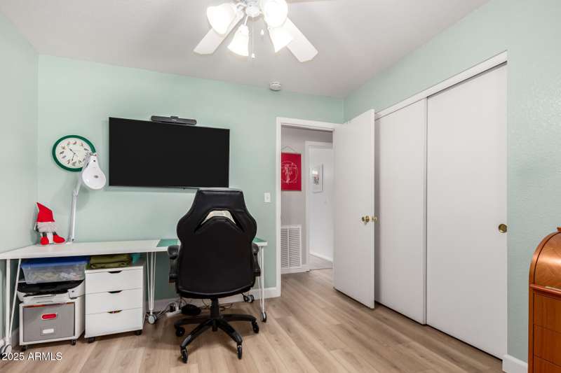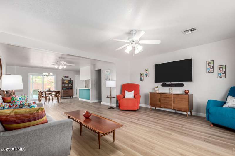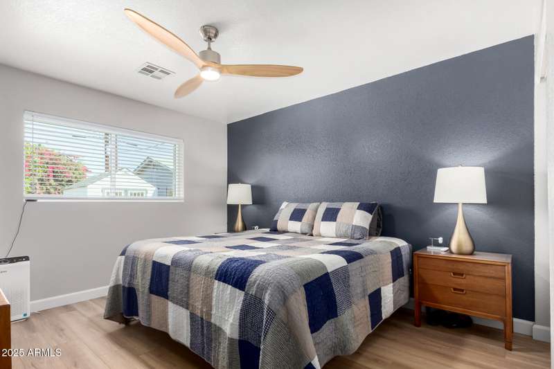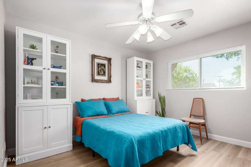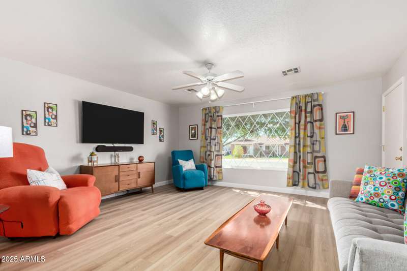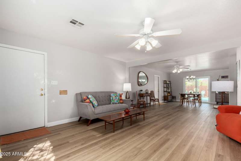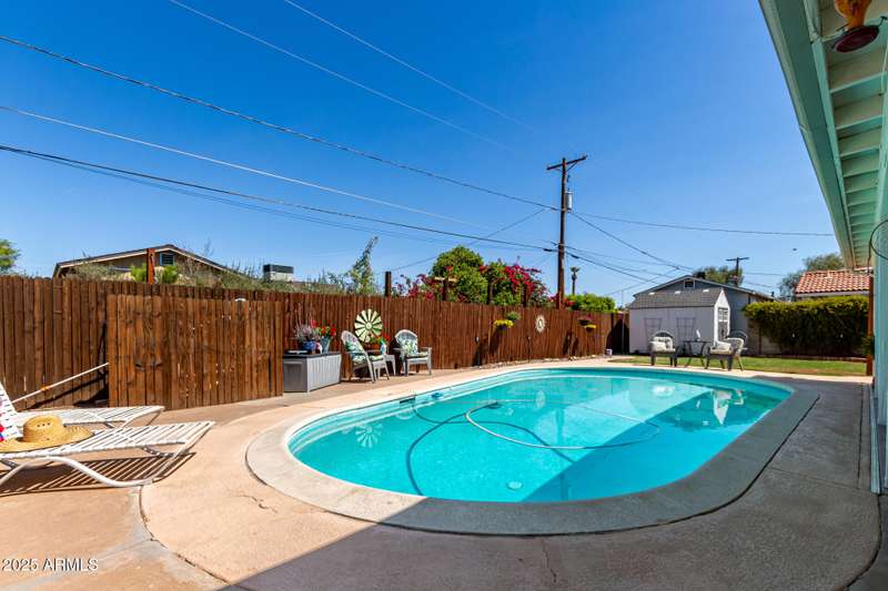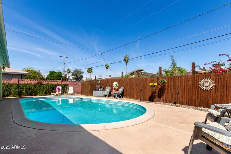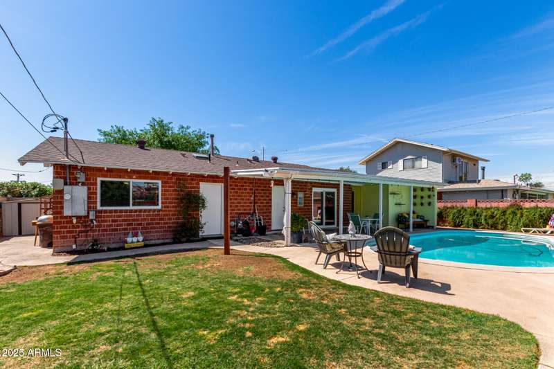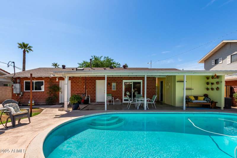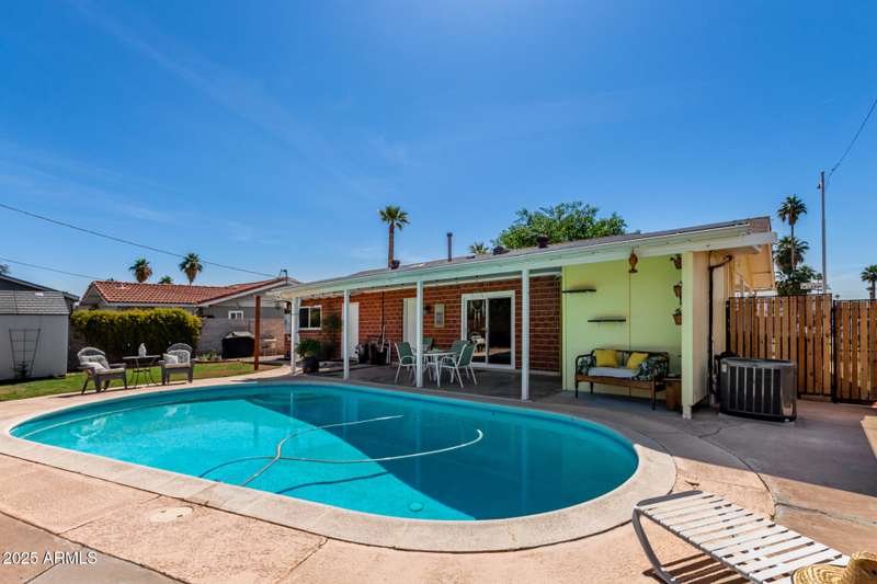 Fabulous brick ranch home with mid century touches throughout. Enjoy the long list of updates to this charming home. Recent updates include: new flooring throughout, both bathrooms completely remodeled, new windows and slider, new HVAC system and much more. You'll enjoy the character of this home from the architecture to the lovely finishes. North facing backyard with refreshing private pool for the Phoenix summer! Direct access to the fabulous back yard from the primary suite. This home will absolutely delight. Plenty of storage includes two storage sheds. Conveniently located close to shopping, dining and I17 access.