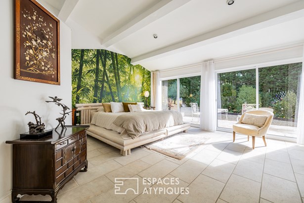 Inspired by Californian villas with taut and contemporary lines, in the heart of a park of more than 6500 m2, it exudes with its approximately 303 m2, a unique elegance, worthy of the bold creations of LAUTNER and SAARINEN.