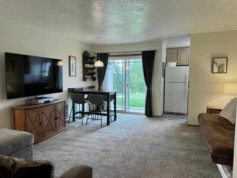 What do you want in a condo at Mt Spokane? This one has it. Same owner 25 years and all updated and very nice. Montana side of 700 building. Little kitchen is so nice, even the coveted window above the kitchen sink! Ground floor with walk out patio. Laundry on this level. Tasteful new slider and tankless water heater!!!!!!!!!!! Such a great, convenient location. Get up here!!!!!!!!!!!! Rec building has inground pool, hot tub and sauna. Gotta love Mt Spokane!
