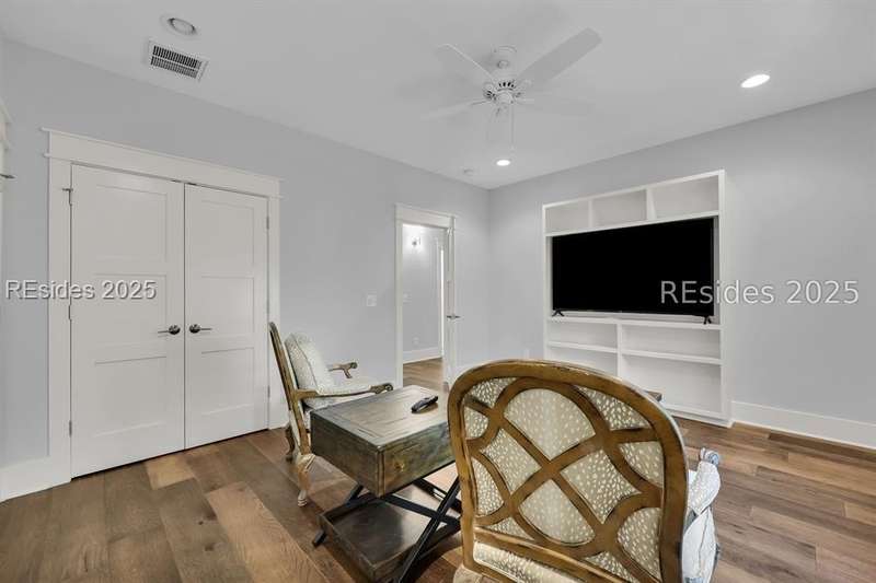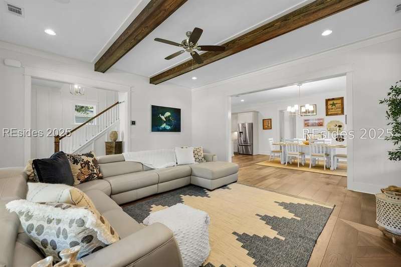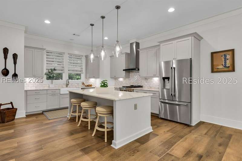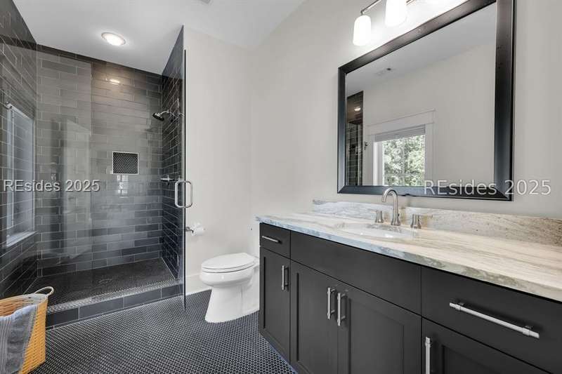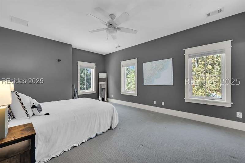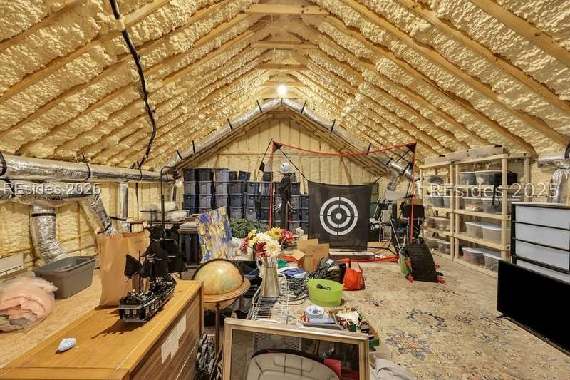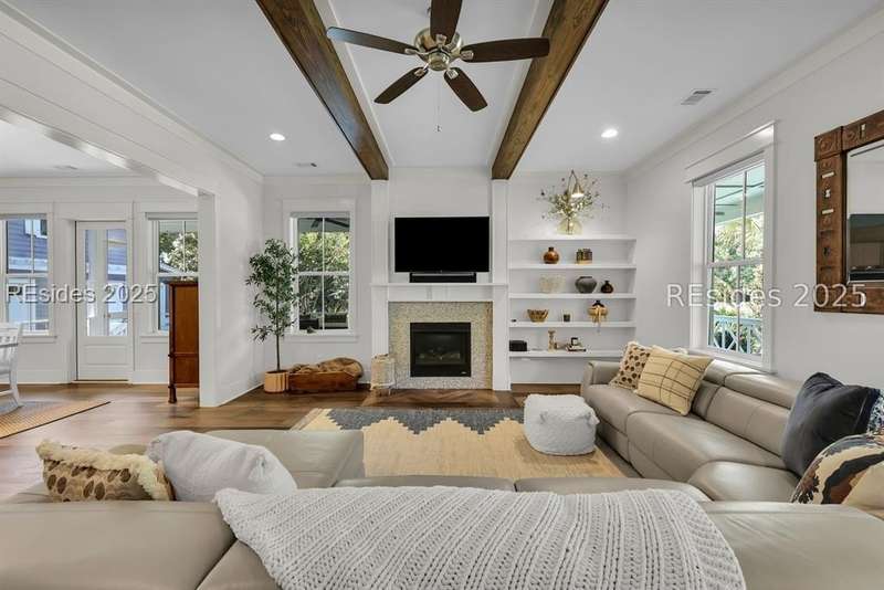Make the model home your new home! Welcome to 2 Oldfield Village Road - Your New Lowcountry Home. Designed by Pearce Scott, this distinctive property was built by Frontlight Building Co offers over 4,100 sq ft of living space plus 700+ sq ft of unfinished area ready for you to create a new special space. Set back from the road, the home greets you with a wraparound porch extending from the west to the south side, transitioning into a screened-in area with a spacious outdoor dining space ideal for embracing the Lowcountry lifestyle. The first floor features a 350 sq ft living room anchored by a tabby-covered gas fireplace. At the heart of the home is a 520 sq ft kitchen and dining area that stretches from the north wall to the screened porch. Ten-foot ceilings and expansive windows flood the space with natural light, creating a warm, inviting atmosphere for gatherings and daily living. Located at the rear for privacy, the primary bedroom includes dual walk-in closets and a luxurious bath with dual vanities, a soaking tub, and a walk-in shower. A well-appointed laundry room with extra cabinetry and a work sink sits conveniently between the kitchen and primary suite. Upstairs, three additional bedrooms offer flexible living. The second bedroom, nearly 240 sq ft, could serve as a second primary suite with its en suite bath. Bedrooms three and four share a third full bath, and bedroom four connects to the unfinished space over 700 sq ft of potential for a golf simulator, fitness room, office, or craft studio. The adjacent 2.5-car garage includes a full guest suite with kitchenette, bath, and generous sleeping and sitting areas perfect for visitors or multi-generational living. Looking for outdoor living & privacy? Set on a private 0.53-acre lot, the property features raised planting beds, a firepit, and ample space for outdoor games. The backyard borders Oldfield Club Association land, ensuring lasting privacy and protected views.