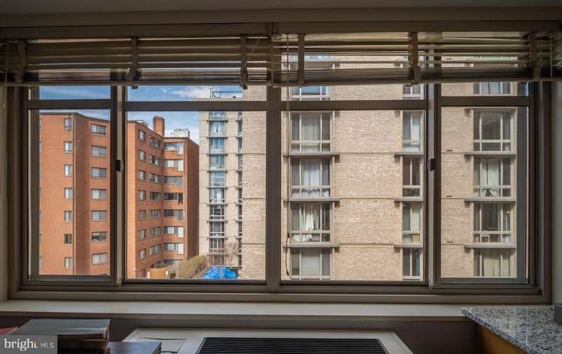 A great opportunity to own this spacious Studio apartment featuring large windows with Northern exposure. This airy and bright apartment is situated on the 4th floor. It has a totally renovated kitchen with ceiling height maple cabinets, granite countertops, full sized refrigerator, range and DISHWASHER, 12 X 12 Parquet floors throughout and a very large walk-in closet. This is a perfect for a first time home buyer or an investor. A well-managed, secure building with a 24-hour front desk, and a rooftop pool with fantastic views of Roslyn, the Washington Cathedral, Georgetown, and the Monument. A fitness center, courtyard/patio with grills, Wi-Fi in common areas, community room, and business center complete the building's amenities. The co-op fees include all Utilities, Taxes, and Insurance. This is a Coop but investors are also welcome. The apartment has an ""underlying mortgage"" (UM) of approx. $19,500. Two blocks to Foggy Bottom Metro and GW University and Hospital, three blocks to Whole Foods and Trader Joe's. Kennedy Center, World Bank, IFC, State Department, and Georgetown shops and dining are within several blocks. Current Tenant's Lease ends on 7/31/2026