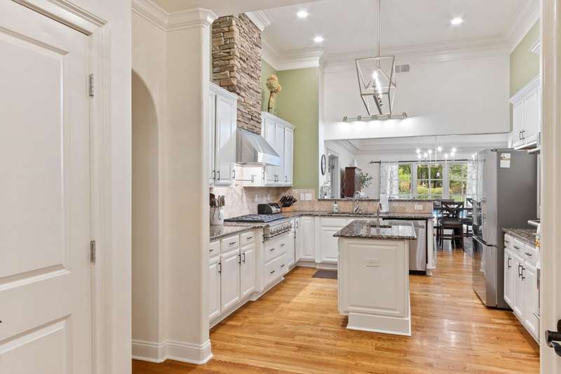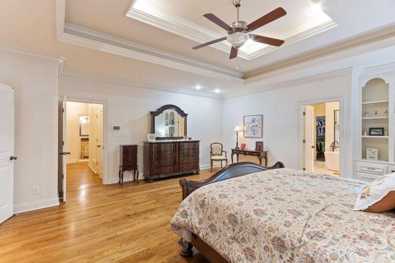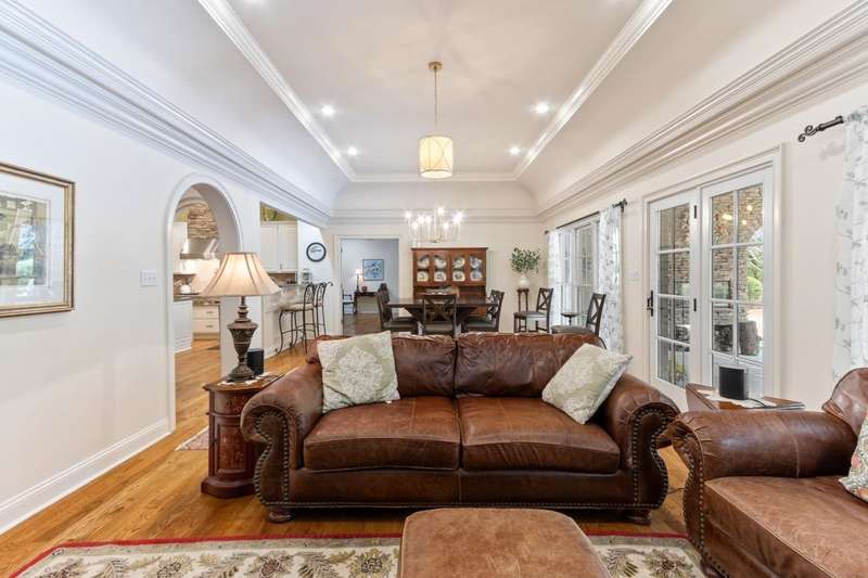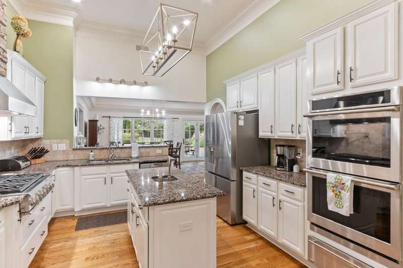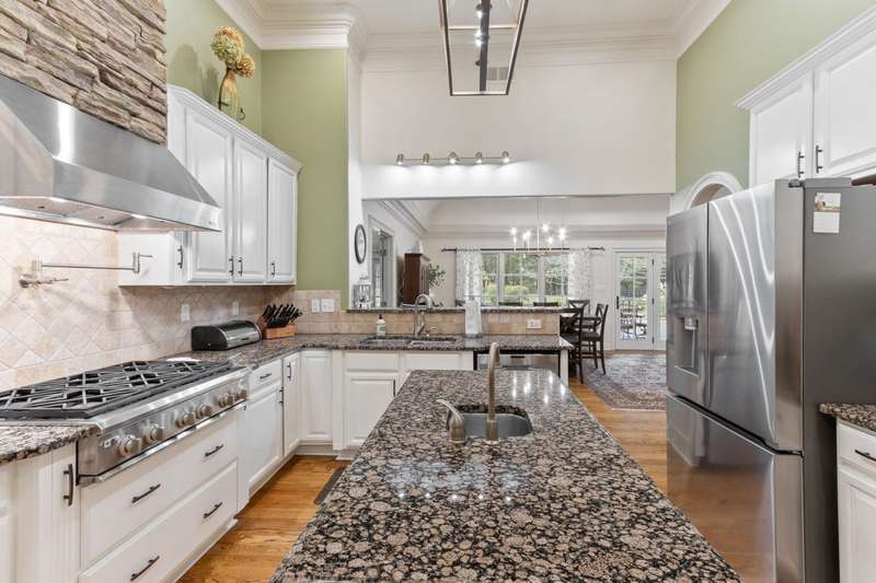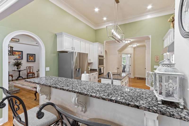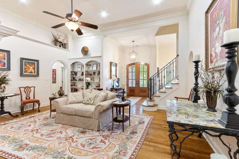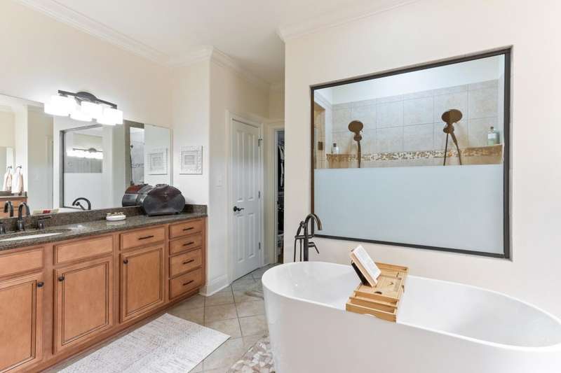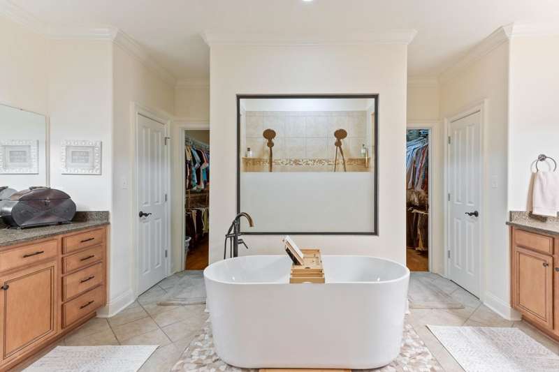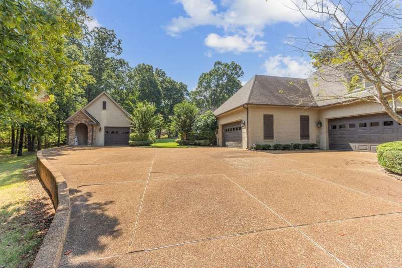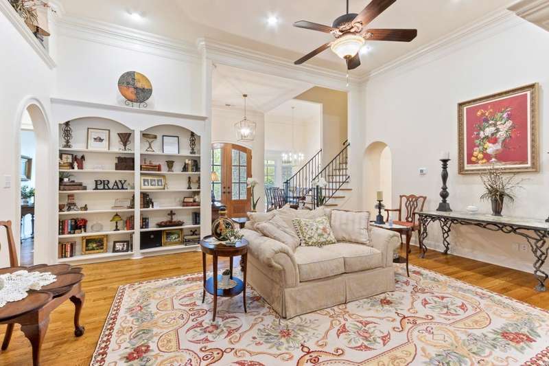 Custom designed and quality constructed by Hunter Ryan, this home impresses throughout it's thoughtful interior & outdoor spaces. Offering a perfect floor plan with 4 bedrooms & 3.5 baths down, and an oversized 5th bedroom (or bonus) w/full bath up, the capacious entertainment spaces in between offer light-filled rooms, tall, smooth ceilings, custom heavy moldings, a freshly painted interior, beautiful new lighting, stone fireplaces & a kitchen that delights! The covered rear porch offers a double sided fireplace, an outdoor kitchen, a heated/cooled 1/2 bath, with views of the glistening pool, fountain, and lush mature landscaping. There are 2 double side-load garages + a detached insulated drive-thru garage w/half bath & water heater that can be finished to expandable space, or enjoyed by the man of the house. Temp controlled storage in main garage & expansive walk-in attic/storage. Nestled on 4+ acres surrounded by nature, with deer and hummingbirds visiting daily. A MUST SEE!!!