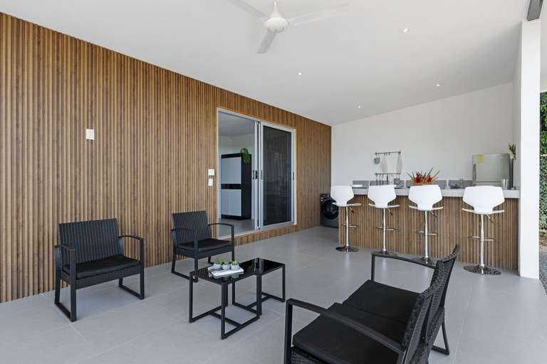 The spacious living room and large sectional provide ample room for one to sit back with friends and family to watch your favorite shows on the 70-inch flat screen TV, or simply enjoy the cross breezes by opening the sliding glass doors on two sides of the room.