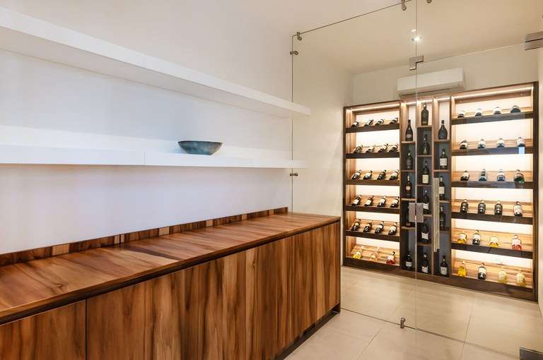 And what fabulous ocean view home would be complete without its own wine room! Temperature controlled, and made with custom cabinets and lighting, this luxury touch fits perfectly with the entertaining capabilities of this home.