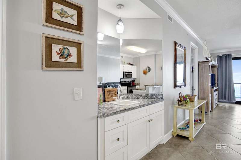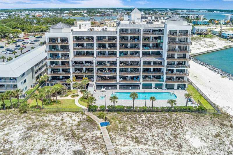 Coastal Charm Meets Iconic Views at Grand Pointe 603Welcome to Grand Pointe 603 ? a beautifully updated 2-bedroom, 2-bathroom condo, perfectly positioned to showcase stunning views of both the Gulf of Mexico and Perdido Pass. Located in one of Orange Beach?s most coveted gated communities, this sixth-floor retreat offers the ideal blend of comfort, location, and scenery.Step inside and you'll be greeted by a light-filled, coastal-inspired space with modern updates throughout. While recently renovated, this condo maintains a relaxed charm that makes it the perfect beachside escape or investment property. The open living area flows seamlessly to the private balcony, where you can enjoy front-row seats to passing boats, playful dolphins, and unforgettable sunrises over the water.The Primary Suite offers a peaceful retreat with direct balcony access and an en-suite bathroom, while the guest bedroom features its private bathroom, ensuring comfort and privacy for all. The renovations enhance everyday living with tasteful finishes and a clean, modern aesthetic.Grand Pointe?s resort-style amenities include gated entry, an outdoor pool overlooking the Pass, a heated indoor pool and hot tub, a fitness center, a steam room, and a sauna. Just steps from the sugar-white sand and within walking distance to San Roc Cay Marina?s shops, restaurants, and entertainment ? you're never far from the action.Whether you're relaxing on your balcony or exploring the vibrant Orange Beach lifestyle, Grand Pointe delivers coastal living with an unbeatable view. Don't miss your chance to own a piece of this exceptional waterfront community. Buyer to verify all information during due diligence.