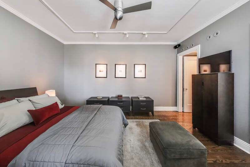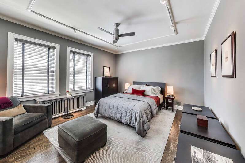 Architect-owned apartment located in a boutique prewar building in Lakeview, offering just two units per floor per elevator tier with separate passenger and freight elevators. Fully restored and thoughtfully updated, the home showcases architectural details such as refinished oak hardwood floors, crown moldings, chair rails and picture frame moldings, arched doorways, a decorative fireplace, and custom radiator covers. Modern comfort upgrades include all-new windows and central air-conditioning. The kitchen features high-end KitchenAid appliances, a new dishwasher, wine cooler, granite countertops, and a glass tile backsplash. The primary bathroom offers a mix of vintage and luxury with the original tub, a separate steam shower, marble tile, and Grohe fittings, while the second bath is outfitted with Ann Sacks limestone tile and Lefroy Brooks fittings. Technology upgrades include adjustable recessed and track lighting, Legrand Adorne touch dimmers, smart thermostat, smart smoke detectors, and full apartment wiring for sound, seamlessly blending classic charm with modern convenience. Steps to Lake Shore Drive, the lake front, shopping, dining, night life, CTA bus routes and more.
