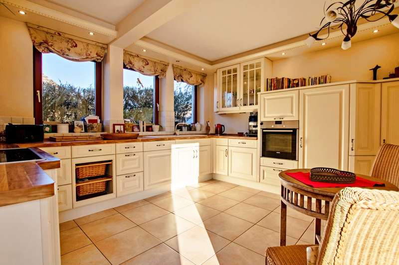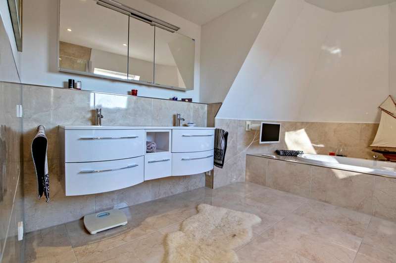 This exclusive detached house, which has been continuously modernized and maintained, offers a living space of approx. 157 m² and is set on a generous plot of approx. 1041 m². The property impresses with a successful room layout with a total of five rooms, including three bedrooms and two bathrooms, which guarantee a high level of living comfort. The house impresses with its high-quality fittings, which can be felt throughout the property. The heart of the property is the spacious living area on the first floor, which offers plenty of room for spending time with the family. In 2008, the children's room on the upper floor was extended and the roof was insulated to increase both energy efficiency and living comfort. A year later, an office was added on the top floor, which provides optimal lighting conditions thanks to the large skylights with internal pleated blinds and external darkening from Velux. A highlight of the house is the modernized master bathroom en suite, which impresses with modern fittings and a stylish design. Here, attention was paid to a contemporary design that combines functionality and aesthetics. An additional garden plot of 180 m² was also purchased in 2017, which is planted with fruit trees and offers additional scope for development and use. The well-tended garden area invites you to spend relaxing hours outdoors and offers plenty of space for a variety of design ideas. The property is ideal for families or couples who value upscale furnishings and a well-thought-out room layout. Thanks to the existing modernization measures, the house is in good condition. A viewing of this attractive property, which impresses with its high-quality fittings and inviting interior design, is highly recommended. Let yourself be inspired by the advantages of this detached house during an appointment on site and get a personal impression of its potential.