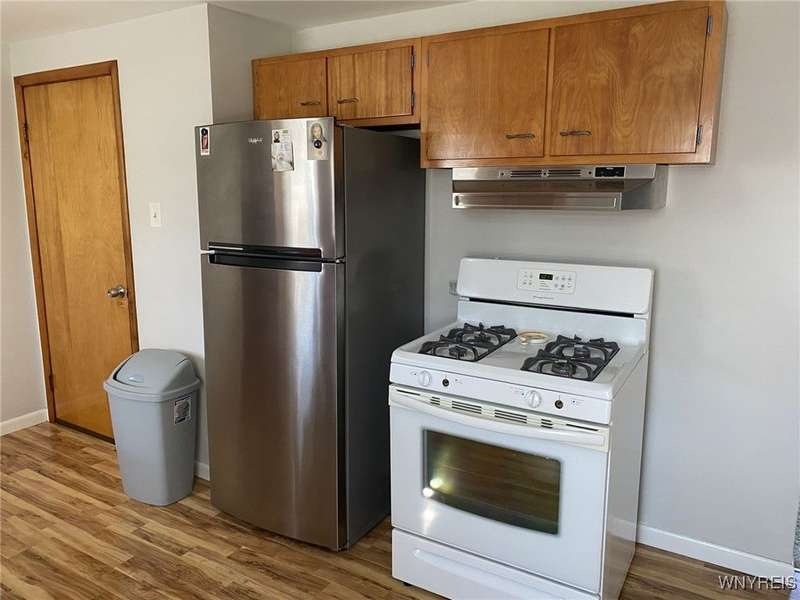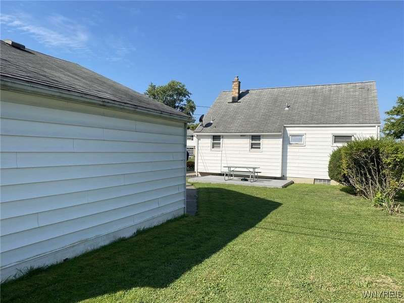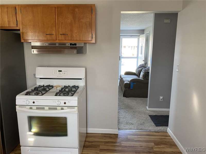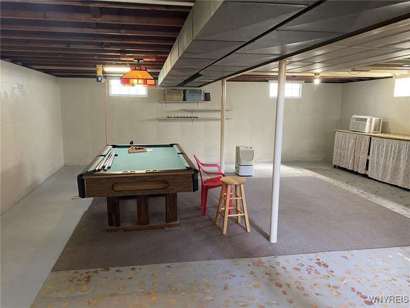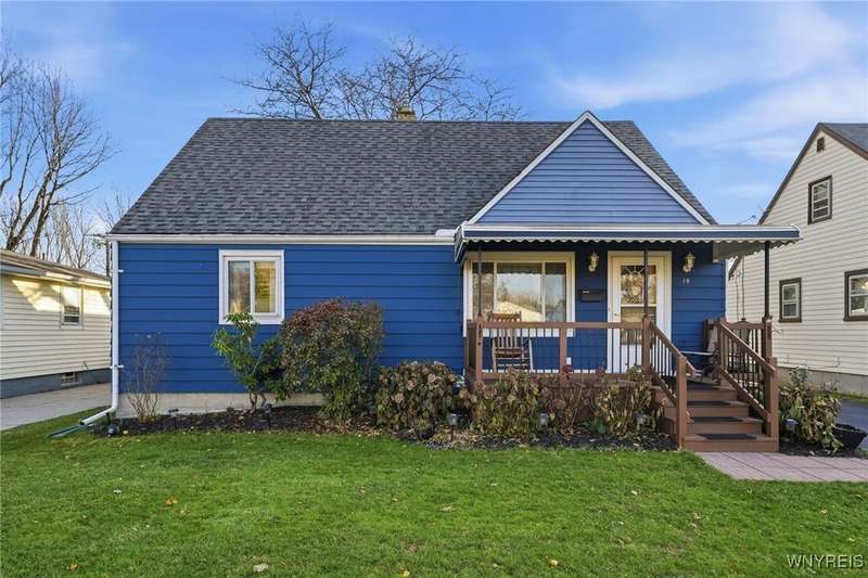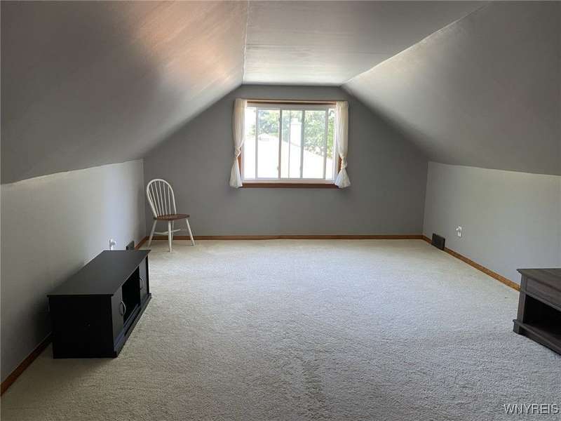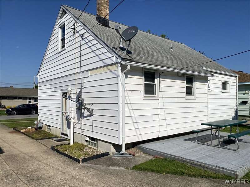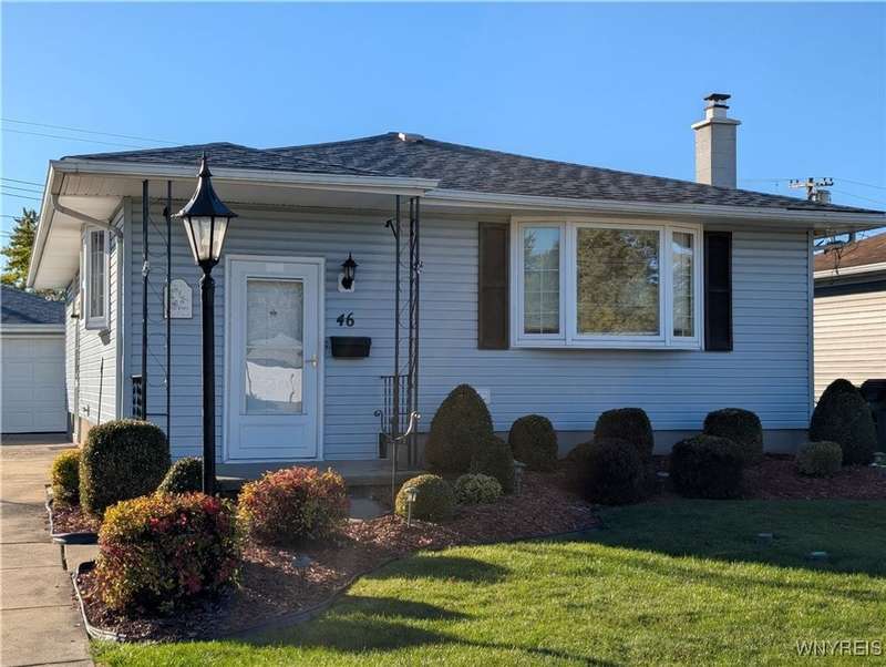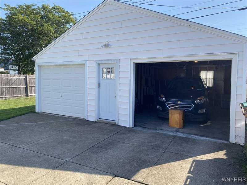 Pampered inside and out! This spacious MAINTENANCE FREE 3 BR, 1 Bath Cape style home offers move in condition. Custom blinds, updated flooring, and oversized 2 car garage -ONE SIDE FOR CAR - THE OTHER SIDE FOR STORAGE. Kitchen stove and refrigerator and basement dryer all included in as is condition on the day of closing. 2nd Floor SPACIOUS 3rd Bedroom. Full basement with laundry - POOL TABLE STAYS!!! Convenient location only mintures to thruway and stores and restaurants. YOU SNOOZE YOU LOSE!