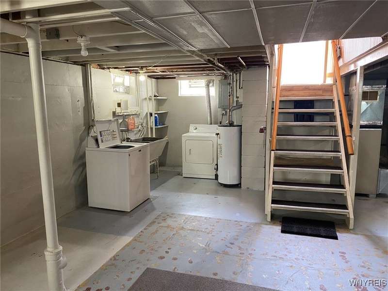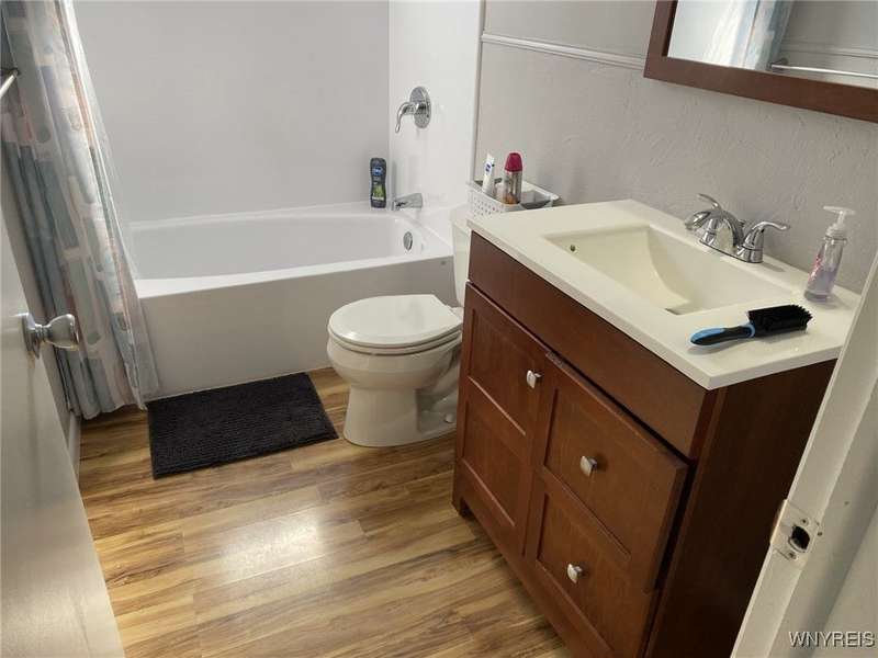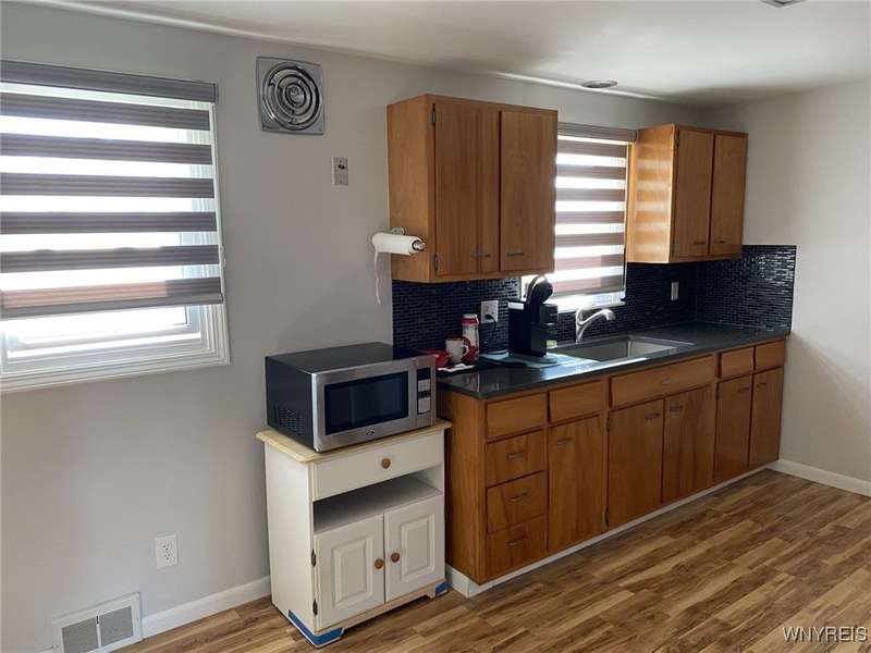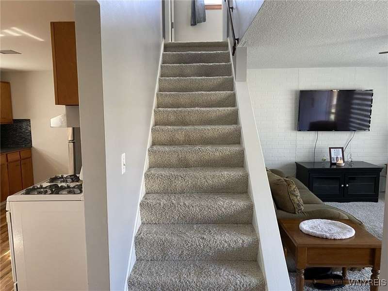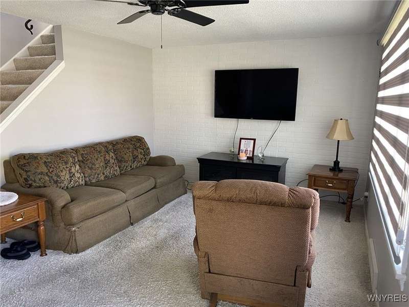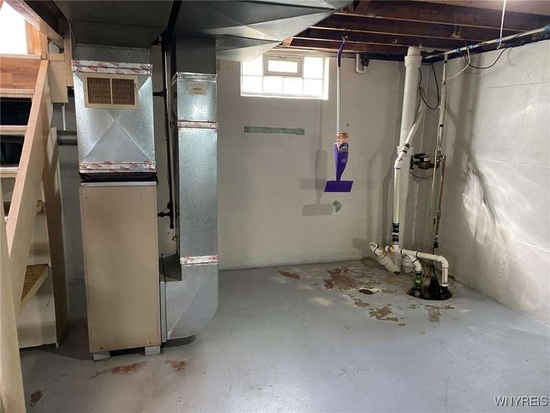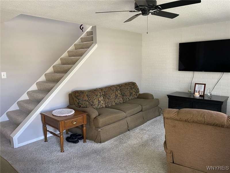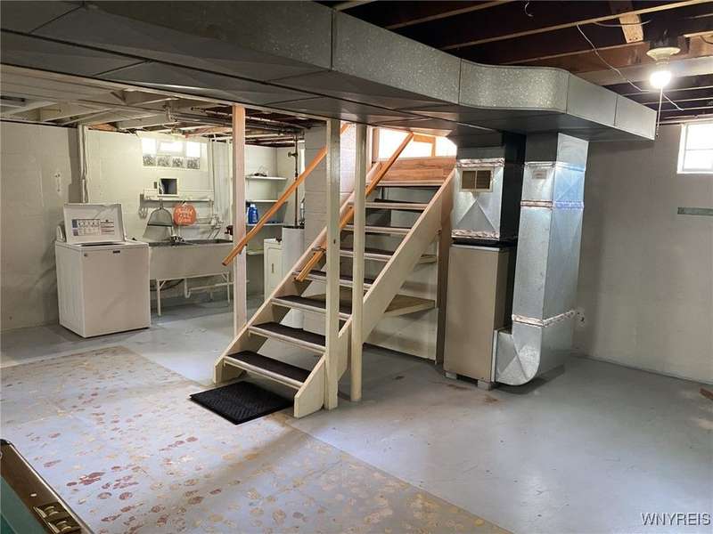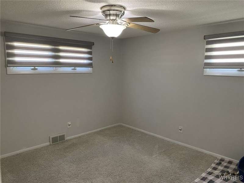 Pampered inside and out! This spacious MAINTENANCE FREE 3 BR, 1 Bath Cape style home offers move in condition. Custom blinds, updated flooring, and oversized 2 car garage -ONE SIDE FOR CAR - THE OTHER SIDE FOR STORAGE. Kitchen stove and refrigerator and basement dryer all included in as is condition on the day of closing. 2nd Floor SPACIOUS 3rd Bedroom. Full basement with laundry - POOL TABLE STAYS!!! Convenient location only mintures to thruway and stores and restaurants. YOU SNOOZE YOU LOSE!