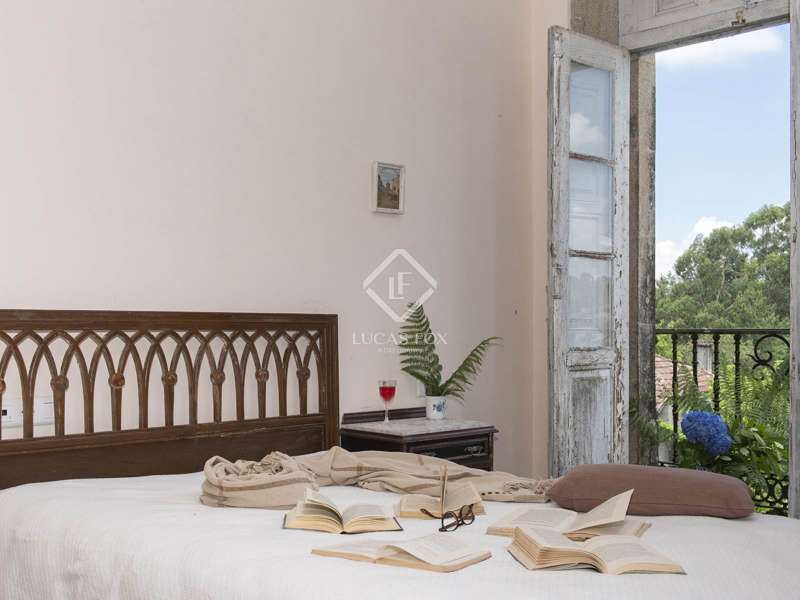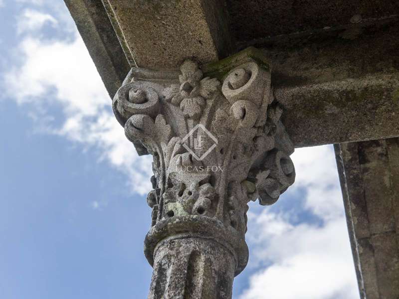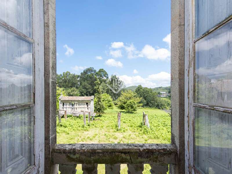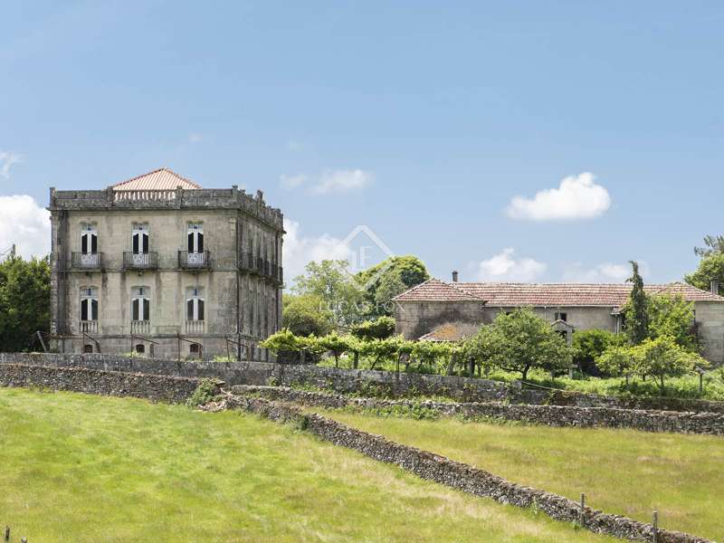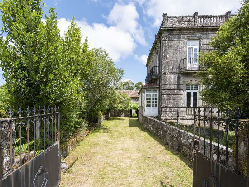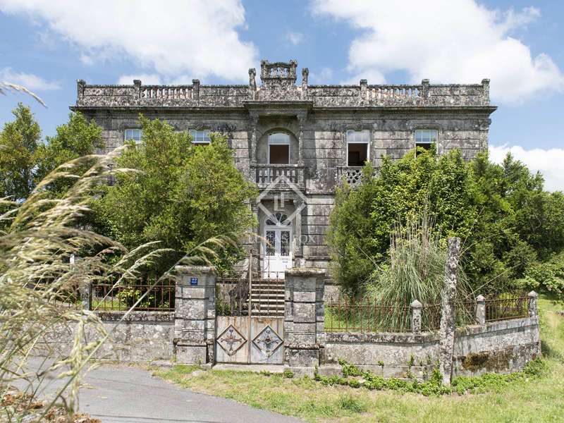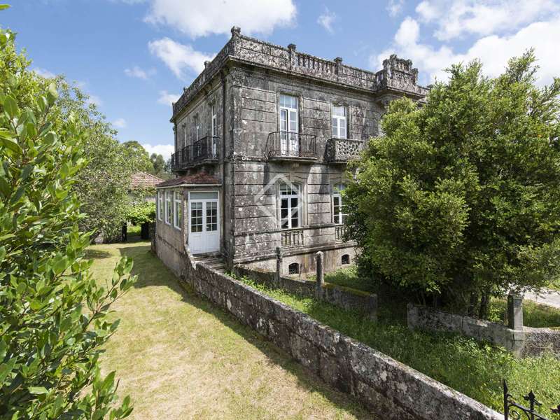 Construction of this fantastic and exclusive Indiano-style house began at the beginning of 1915. As can be seen, the stonework and dedication are unique and unrepeatable and make this property very special. La Finca is located in the Redondela area. It offers fantastic views of the valley and total privacy, given its location. On La Finca there are two buildings: the Indian house and another typical Galician L-shaped house with two floors and a patio. These two buildings are presented completely to be renovated; In fact, although the Galician house is inhabited in the summer months, it needs renovation and updating. The stately entrance of the main house, the Indiana, is accessed by some majestic stone stairs, with two beautiful columns that offer a sample of what we can find at an architectural level. The facade is full of ornaments, with a great architectural expression with unique symbolic elements; a unique stonework. Upon entering, there is a beautiful and bright entrance hall with stairs that divide this property into two floors. On the ground floor, we find a spacious and sunny living room, with high ceilings and original doors of the time. Next to the living room, there is also a bedroom that could be used as a study. On this same floor, there is a large kitchen, very bright and with beautiful views. It should be noted that you can enjoy the beautiful views from most spaces of this magnificent house. There is also a spacious bedroom, with a small wrought iron balcony and a bathroom on this same floor. The first floor houses the bedroom area. In this area of the house, there are four good-sized bedrooms, with uniquely designed stone-worked balconies and three bathrooms. This building also has a large basement and an attic. The Galician house also has two floors. On the ground floor, we will find a long rustic kitchen, a bathroom and a living room with a fireplace. In the upper part, there is a good-sized living room, with a balcony and a fireplace, two bedrooms, one of them with a small balcony, and a bathroom. The property has a granary and also a water well. Get in touch for more information.
