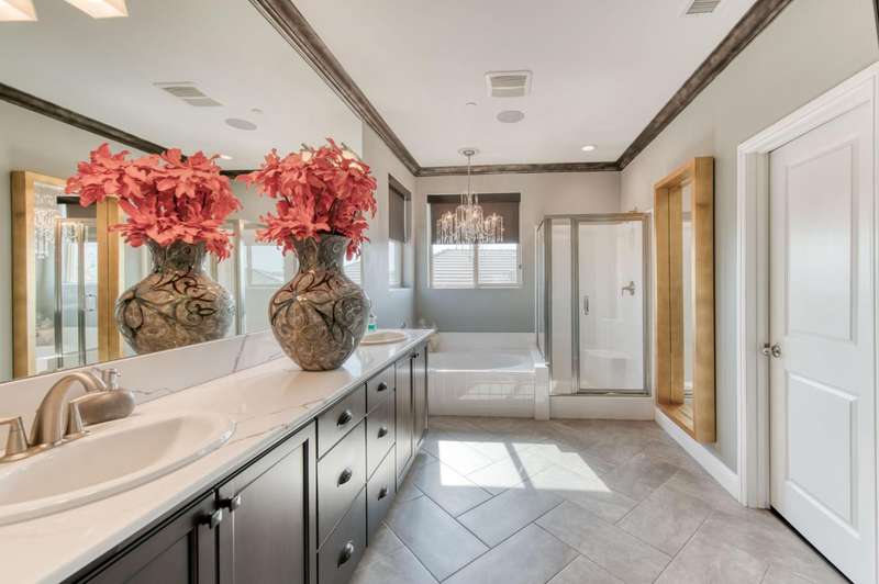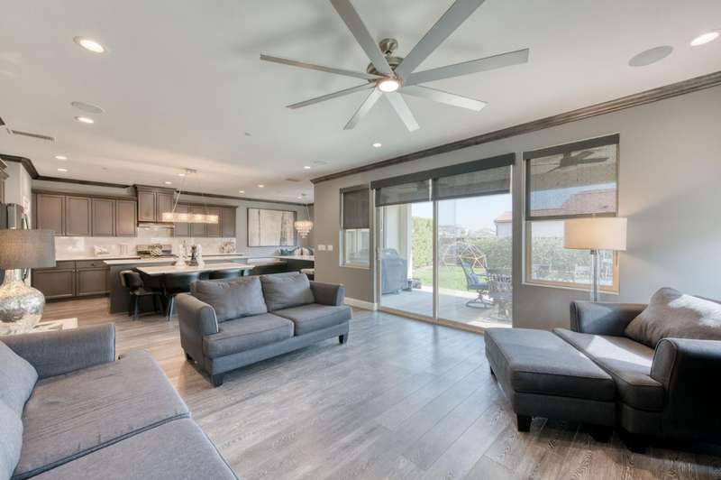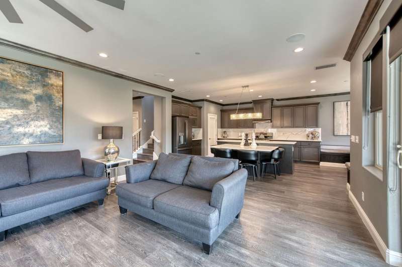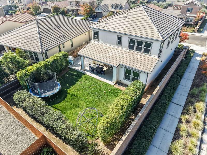 Step into this thoughtfully designed, quality-built McCaffrey home. The grand entryway leads into a bright, open-concept living area featuring a spacious kitchen with quartz countertops, an oversized pantry, and a built-in dining table, making it perfect for gatherings and everyday living. Enjoy elegant touches throughout, including crown molding, custom light fixtures, surround sound speakers, and window coverings in every room. The main floor offers a private bedroom with an attached bath, ideal for a mother-in-law suite or guest space. Upstairs, a generous loft complements the large secondary bedrooms, while the luxurious primary suite boasts a built-in coffee bar, an expansive bathroom, and a walk-in closet. Energy-efficient features include an Owned Solar system, a tankless water heater, and a durable tile roof. Sitting on a spacious corner lot, this home also offers a 3-car tandem garage, a side yard with gas hookup, and potential for trailer parking. Located in the desirable Riverstone community, you'll enjoy access to top-rated schools, nearby restaurants, freeway convenience, and resort-style amenities everything you need for modern living.