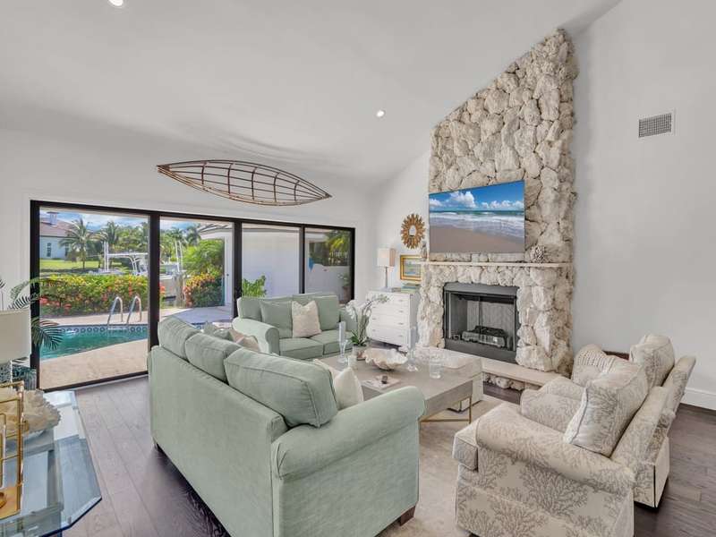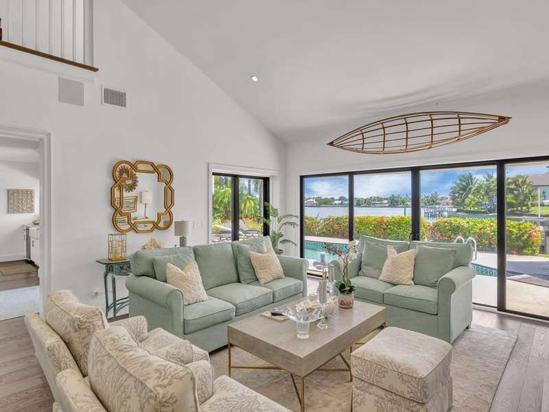 Lovely 5BR/5BA riverfront home w/over 3,700 sq ft & water views from nearly every room. Exterior amenities include outside bar & large pool overlooking the water w/spectacular views. Property and contents represented in photos is subj. to change. Sizes approx./subject to error.