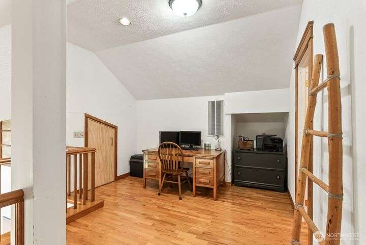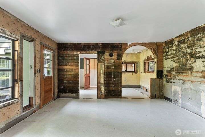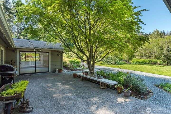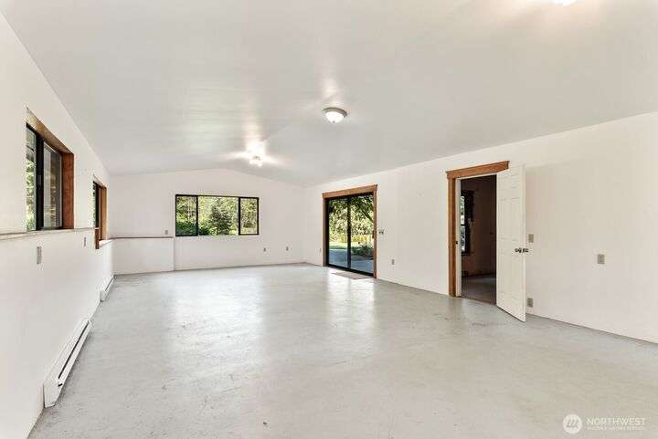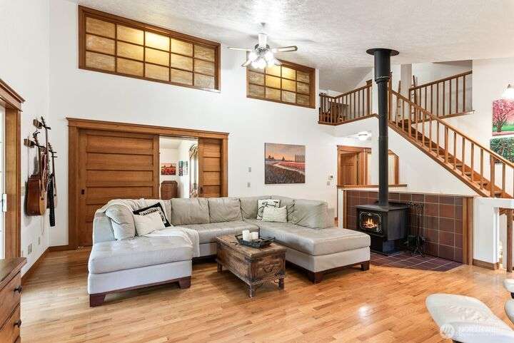 Truly unique property just outside city limits on 1.52 private acres, this one-of-a-kind home offers space, flexibility & connection to nature. Set back from the road, the home features vaulted ceilings, hardwood floors, open living areas, bright expansive chef's kitchen, wood fireplace, incredible light filled spaces, primary suite, flex room w/vintage pocket doors & west-facing covered porch overlooking spacious yard. Oversized garage w/12' ceiling & shop spaces, perfect for hobbies/storage. Plus, attached but separate ground-lvl partially finished house offers excellent potential-guest space, rental or studio. Enjoy nearby forestlands trails, Whistle Lk, Heart Lk & Mt Erie. Peaceful retreat with room to live, create, entertain & explore.