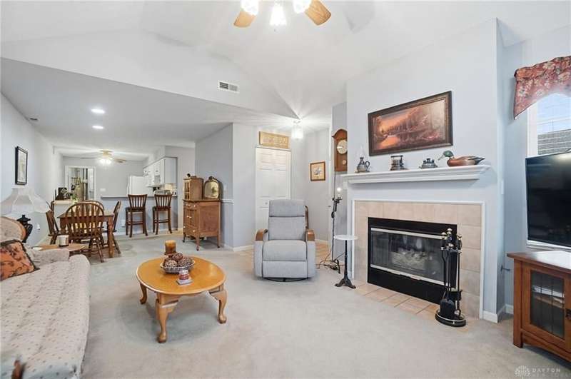 This delightful three-bedroom, two-and-a-half-bathroom condo offers a stunning view of the pond and golf course, bringing charm and tranquility to your living experience. Picture yourself on the outdoor patio courtyard, watching beautiful sunsets reflecting off the sparkling water—such serenity is a rare find in condominium communities. As you step inside, you will be welcomed by a soaring cathedral ceiling in the great room, enhancing the open floor plan with a touch of grandeur. The formal dining area connects seamlessly to the kitchen via a handy breakfast bar that provides ample space for stools and makes meal preparation a breeze. On the opposite side of the kitchen, the laundry room offers direct access to the two-car garage. No more rushing to your car in the pouring rain or scraping ice and snow off your windows during the frigid winter months. One of the standout features of this property is two suites—one on the first floor and a spacious primary suite on the second level, complete with an angled ceiling that adds character. Situated within The Crossings at Canterbury Trails, this condo is ideally located near popular attractions, including the Nutter Center, Fairfield Commons, Walmart, Sam';s Club, and the scenic Beavercreek Wildlife Area. Whether you';re an avid golfer, an outdoor enthusiast, a dedicated shopper, or simply in need of everyday essentials, anything you need is just a stone';s throw away. Additionally, if you work at Wright-Patterson Air Force Base or Wright State University, you will find the location very convenient. With its captivating features, exceptional amenities, and prime location, this condo offers a living experience that';s hard to resist. Don';t let this incredible opportunity pass you by—call now to make this beautiful condo your new home before someone else beats you to it! *Note: The HOA fee includes access to the clubhouse, exercise area, hazard insurance, landscaping, pool, professional management, snow and trash removal.*