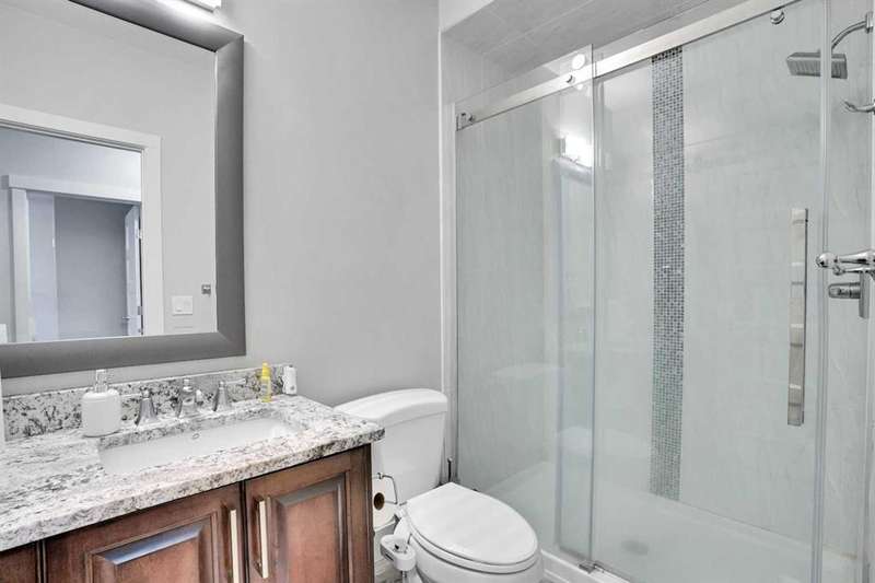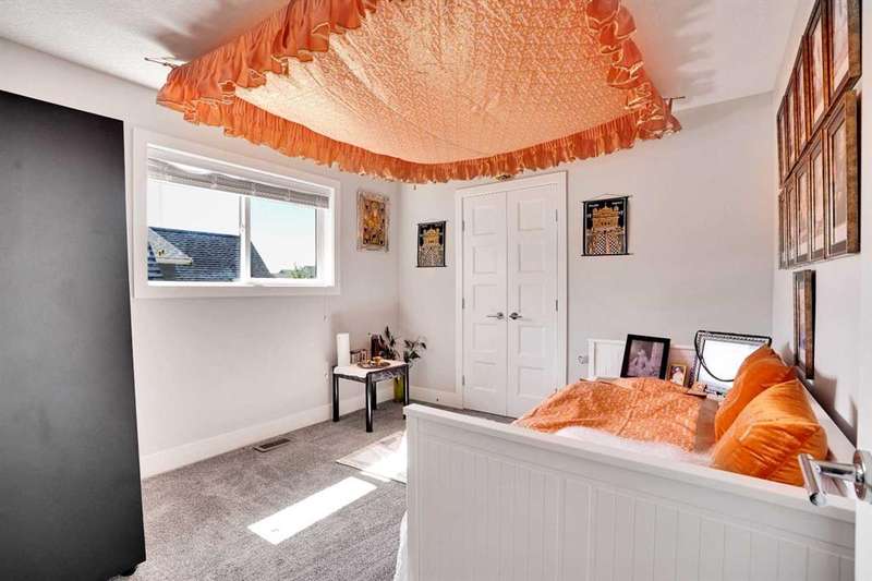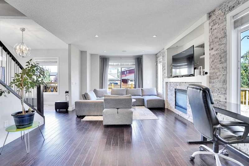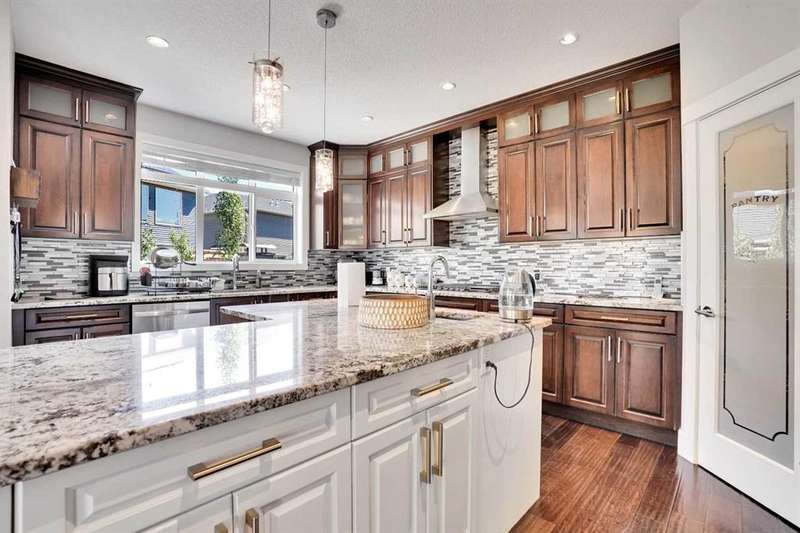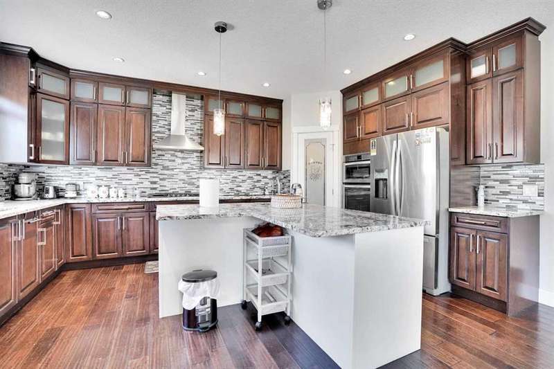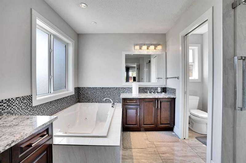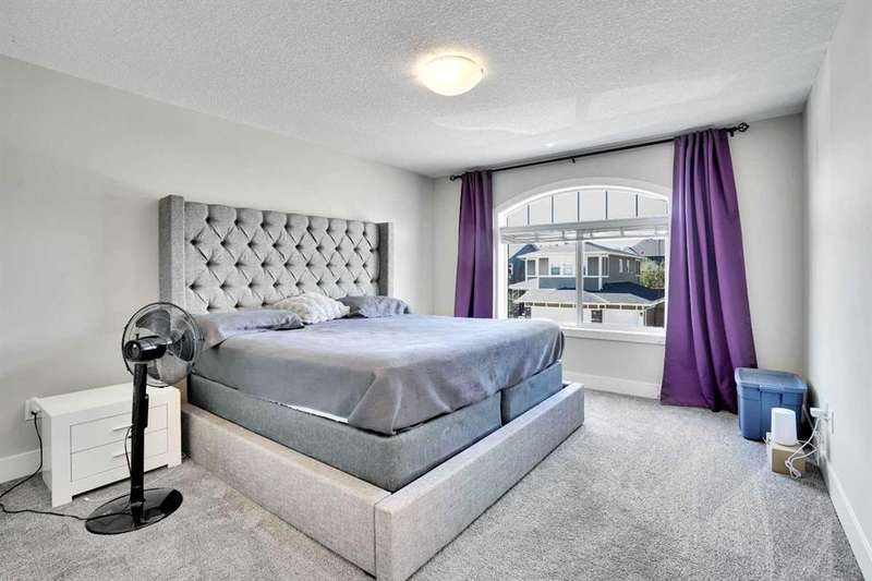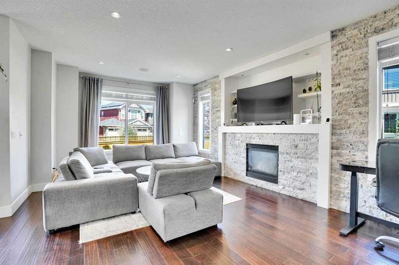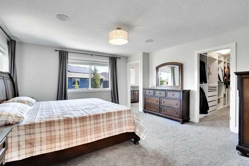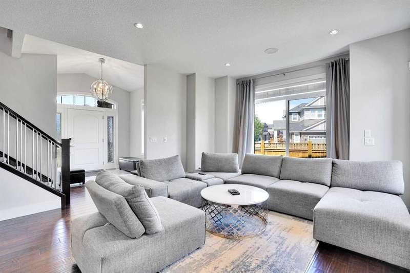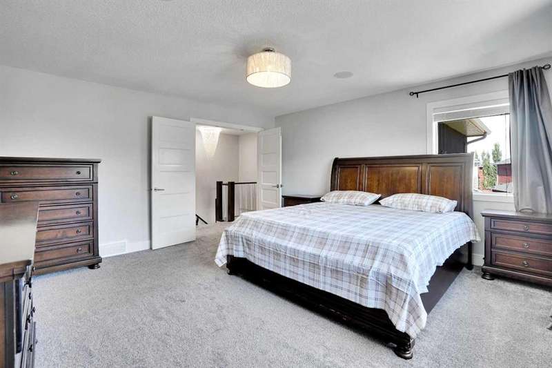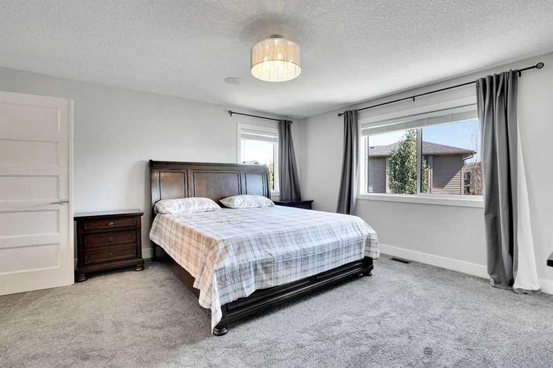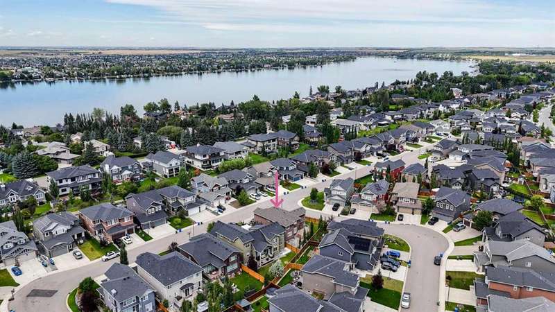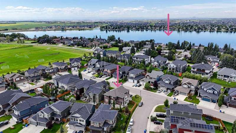 Welcome to luxury living in the heart of Chestermere! This exceptional home boasts outstanding curb appeal, featuring a distinctive sloped roof, custom stonework, and a spacious front porch with an extra-wide entry door. With over 4,000 sq ft of beautifully designed living space, this home is sure to exceed expectations! From the moment you step inside, you’ll be greeted by high-end upgrades throughout—including dazzling crystal chandeliers, a striking stone feature wall with a gas fireplace and built-in shelving, gorgeous granite countertops in every room, and gleaming engineered hardwood floors. Expansive Palladian windows flood the interior with natural light, while walk-in closets, custom built-ins, and premium appliances add to the home’s luxurious appeal. The bright, open-concept main floor includes a spacious foyer, large living and dining rooms, a generous office, bathroom, mudroom, and a chef-inspired kitchen. The kitchen is a true showstopper, equipped with an oversized island featuring a second sink and breakfast bar, ceiling-height cabinetry, and a large walk-in pantry. With 6 large bedrooms and 5 bathrooms, there's room for the entire family and more. The primary suite is a private retreat, accessed through elegant French doors into a massive bedroom with a walk-in closet that’s custom-outfitted with dressers, jewelry drawers, shoe racks, purse hooks, and a full-length mirror. The spa-like ensuite bathroom includes an oversized Jacuzzi tub and a walk-in stone and tile shower. Upstairs, you’ll find a spacious family room with built-ins, three additional bedrooms, two full bathrooms, and a laundry room. (Plus, there are hook-ups for a second laundry area on the main floor.) The fully developed basement offers two more bedrooms, a large rec/family room, and three separate storage rooms—ideal for a growing family or guests. For those who love to entertain, built-in speakers throughout the home and backyard provide the perfect ambiance. The private backyard oasis features a massive exposed aggregate patio and a new quarry stone fireplace—perfect for cozy summer nights. The landscaped yard includes mature trees for privacy, raspberry bushes, perennial gardens, and even fruit trees, including a cherry tree and an apple tree that produces three apple varieties! The oversized triple garage is a dream for hobbyists or mechanics, with high knockdown ceilings, a large built-in workbench, full insulation, and rough-in for a natural gas heater. The expansive driveway offers ample parking, accommodating an RV and three additional vehicles, plus there's backyard access via a large gate for storing a boat or RV on this huge 5,527 sq ft corner lot! Tucked away on a quiet street with minimal traffic, this home is just one block from Eastlake School and Camp Chestermere, and close to walking paths, parks, playgrounds, as well as shopping, dining, and other amenities.
