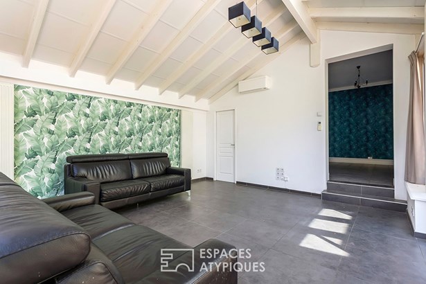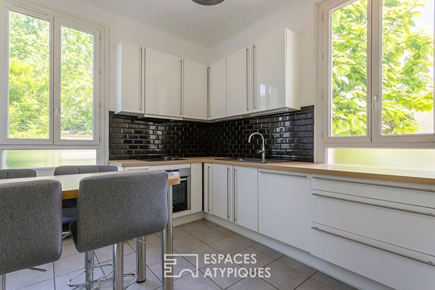 The latter, equipped with large bay windows, creates a real feeling of space and openness to the outside.
