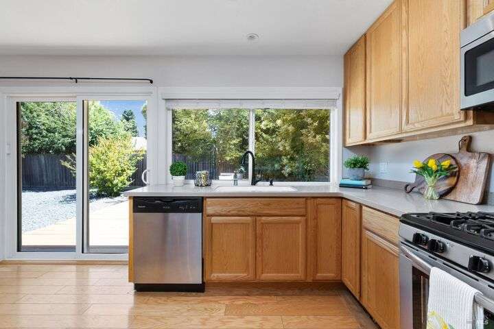 Turn-Key Single-Level Beauty with Modern Updates! Step inside this immaculate 4-bedroom, 2-bath home and fall in love with its perfect blend of comfort and style. A welcoming tile entry, solid surface flooring throughout, and fresh interior paint create a crisp, move-in-ready appeal. The kitchen features sleek Corian counters and quality Frigidaire appliances, while dual-pane windows fill the spaces with natural light. Enjoy indoor-outdoor living with a spacious rear deck ideal for relaxing or entertaining. Conveniently located near schools, transportation and shopping, this home is truly move-in ready. A must-see to fully appreciate its charm and upgrades!