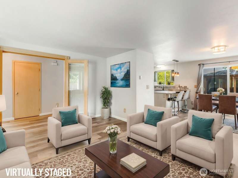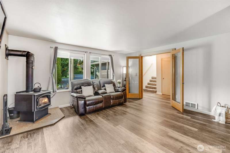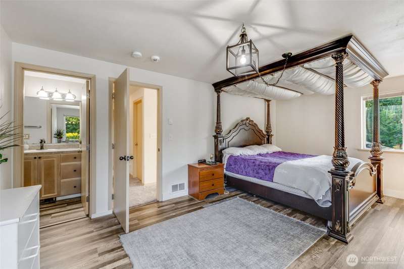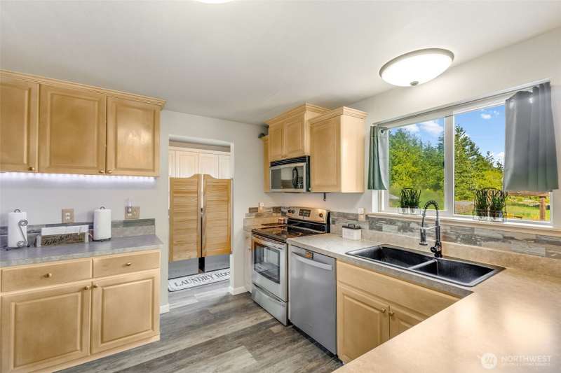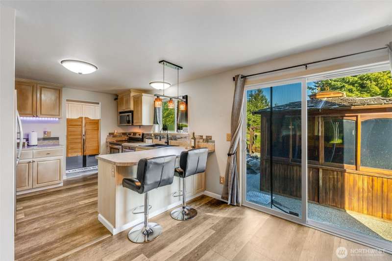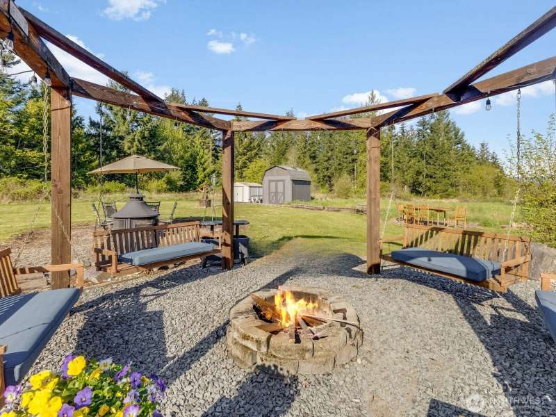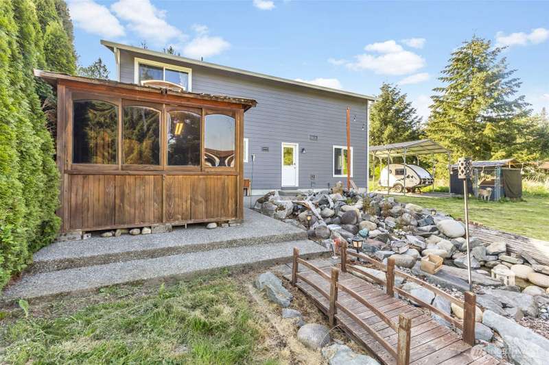 Beautiful Mt. Rainier view & nearly 10 acres of adventure await you! Use your space as you see fit. Relax & unwind, camp & explore in your backyard, entertain by the firepit, hang out under the stars, and you may even spot some wildlife. You may also want to research the possibility for an DADU. This home offers comfort & updates including new flooring downstairs & in the primary bedroom, fresh carpet on stairs & hallway, new water heater (2024) & wired for a generator. Outside find Hardie Plank siding, newer exterior paint, extra 2-car detached shop/garage, RV carport, sheds, dog kennel, new front fencing, swings & firepit area, a water feature, & more. No HOA & tons of room for all your stuff. Come claim your slice of paradise!