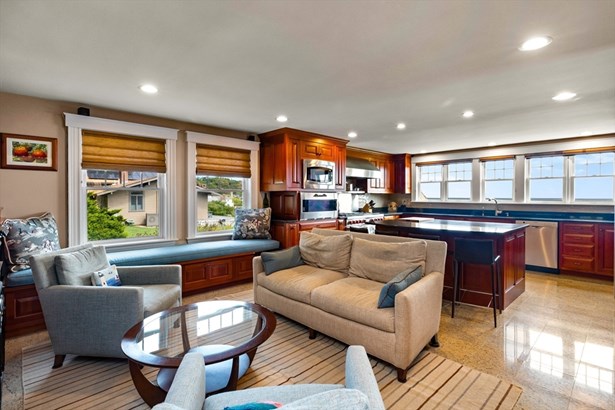 Nestled within a picturesque seaside community, this sizable and sophisticated formal home has elegance and charm. It coasts expansive views of the ocean creating a backdrop that shifts with the rhythms of the tide and the changing colors of the sky. The grand entrance welcomes you into a impressive foyer with soaring ceilings and polished marble floor. The flowing layout includes multiple living spaces each bathed in natural light. The living room accentuated by a fireplace and French doors leading to the patio invites both intimate gatherings and grand entertaining. a well equipped kitchen with a separate spacious pantry, top of the line appliances, custom cabinetry and granite counter tops adjoins a cozy family room that leads to a formal dining room with ocean views. The spacious principal bedroom has a sunroom and well appointed bath. Meticulously cultivated garden with koi ponds , a private path to the ocean edge and a roof top deck. This is a true haven by the sea.