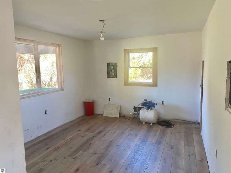Home was in the process of being redone, this is a work in progress, just waiting for your imagination and completion. Electric needs to be hooked up and complete for the heating unit, seller is a electrician and doing the remodel until life changed. Updates include: New roof, many new windows , drywall, bathroom partially done,new electrical that is newly ran .This is a handyman special that needs completion. It sets on a very nice piece of property with a 30 x 40 cement floor garage and a 10 x 20 shed that was used for rabbits. Close to Crystal Mountain and fishing on the Betsie River. Grab your tools and make this your new up North get away or a place to call home.