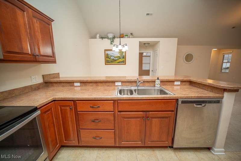 Welcome to this beautifully designed two-bedroom, two-bath condo offering comfort, accessibility, and an unbeatable location near Lake Erie. This corner unit features vaulted ceilings and abundant natural light that enhance its open, airy feel. The spacious living and dining areas flow effortlessly into a large sunroom, perfect for relaxing or entertaining year-round. Each bedroom includes a walk-in closet and a full private bath, ideal for guests or dual ownership. The kitchen is generously sized, with ample cabinetry and workspace for cooking and gathering. Thoughtfully planned wide doorways throughout ensure easy wheelchair accessibility, and there's in-house laundry plus an extra storage room for added convenience. Set in a desirable Huron community just minutes from Cedar Point, Sandusky's waterfront attractions, and Lake Erie marinas, this property offers an active lifestyle surrounded by recreation and leisure options. The community itself features walking paths, a fitness room, a clubhouse, and a sparkling pool, all located across from Plum Brook Country Club and Golf Course. This is low-maintenance living at its best. Spacious, accessible, and close to everything that makes Huron and Sandusky so vibrant. Perfect for year-round enjoyment or a carefree Lake Erie retreat.