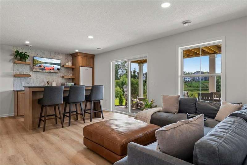 Welcome to the Somerset, one of the Harvest's most desired floor plans! Discover your dream home nestled on a breathtaking lot featuring a pond and serene natural views. This beautifully upgraded residence offers the perfect blend of luxury, comfort, and modem convenience. The main floor boasts a warm and inviting living area featuring a beautiful fireplace flanked by custom built-in cabinetry - ideal for cozy nights or entertaining guests. Expand your entertaining to the newly finished outdoor screen porch with gas fireplace and beautiful deck overlooking wet lands and wooded green space. Continue your entertainment to the newly completed lower level, includes additional wet bar with refrigerator and floating shelves and a countertop bar with stool space, dedicated exercise space, additional 3/4 bath and bedroom with oversized walk-in storage/closet. Additional outdoor space offers stamped concert patio space for additional entertaining!! The chef inspired kitchen is a true highlight, complete with a spacious butlers pantry, upgraded appliances and quartz countertops. Elegant primary suite with large windows offering picturesque views of wildlife, spa inspired bath, large walk-in shower and oversized custom closet. Enjoy additional entertaining space in upper bonus room with dry bar, floating shelves and beverage refrigerator. Upper levels includes four large bedrooms and extremely spacious laundry room. Neighborhood includes parks, waking/bike trails and easy access to 212, schools, city parks and beach. This home has been thoughtfully designed to accommodate every need with comfort and elegance-don't miss your chance to make it yours!
