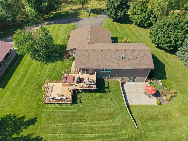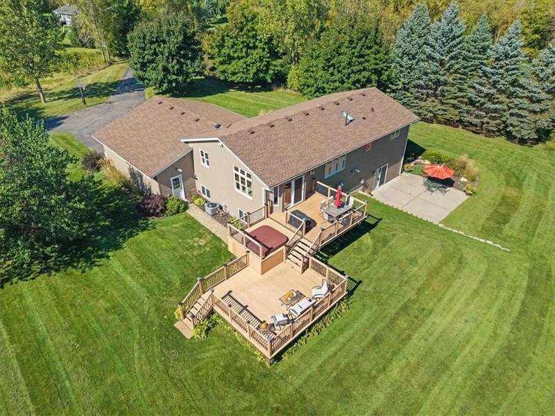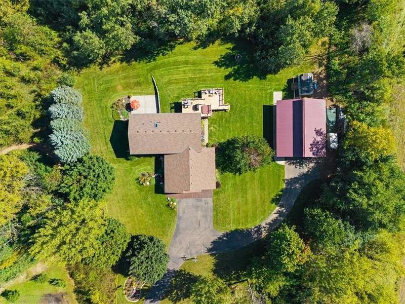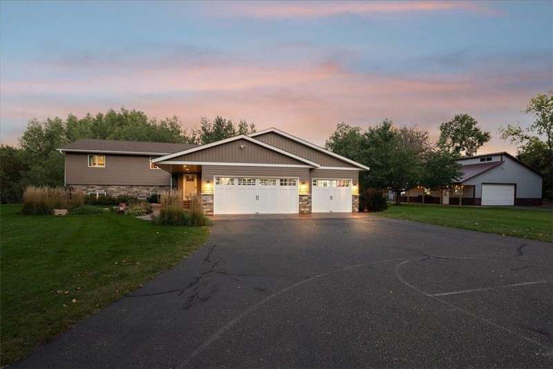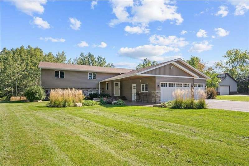 Escape the hustle of the City with this RARE opportunity to own a spacious property in the heart of the countryside; better yet... within minutes to Hwy 94 and Hudson schools, restaurants & shopping! Situated on 3.9 private acres, this 5 bedroom/3 bath/3+ garage home has not only been completely re-done but meticulously cared for. As you drive into the property, you are greeted by a Beautiful home, Mature trees, a Dreamy 48x36 'Mans Cave' shop, beautiful landscaping, a Fun ATV track w/berms & perennial gardens! It feels like your very own Estate with outdoor entertainment spaces throughout! Home offers ample space for all and includes 2 gas fireplaces, 3 bedrooms on the main floor & 2 on the lower level, plus family room! Hot tub, Wooden Shelves in the attached garage, Bar, Pool table & Light, are included! Gourmet Kitchen, huge walk-in pantry, newer SS appliances, a great granite island are open to the huge dining space. Siding, gutters, skylight, garage doors, exterior decorative stone, A/C, Epoxy garage floors were all done 2024. New Roof 2023, Pressure tank 2018, Anderson Windows 2011 and so many more updates! The attached oversized 3 car garage is heated & fully finished....it's so clean & gorgeous!!! The Huge insulated, heated shop is ready for anything, it is a WI property marvel! Hoist is included, floor drains, plenty of upper attic space and a ton of additional conveniences, ready for game day, mechanic work, hunting gear, you name it! Don't forget the 16x10 garden shed, perfect for lawn equipment and those 'out of sight' items!