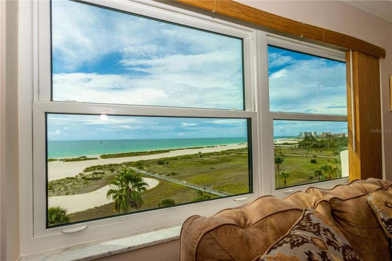 Sept-Dec rate is $3000k. 2026 Season Jan and Feb = $6500/mo. DIRECT GULF FRONT END UNIT WITH BREATH-TAKING VIEWS AND BRAND NEW DOORS AND WINDOWS! Perfect vacation spot to relax and enjoy the peaceful sunsets from this desirable 7th floor corner unit on Sand Key. This spacious extra bright 2 bedroom / 2 bathroom offers you spectacular views and sounds of the Gulf waves from the balcony. All updated, open and gorgeous with designer coastal theme! Master bedroom with King bed, has amazing views and balcony access as well as walk-in closet and bathroom en-suite. Guest room has a Queen bed and large walk in closet. This unit has washer / dryer in the unit as well as larger ones on each floor. Seasonal rentals less than 6 months include $150 in electricity per month. Does not include 13% tax for rentals less than 180 days, $200 cleaning and processing fee $75 & $150 condo association application fee. Enjoy your vacation, relax and enjoy the Beach. Directly across street is the Shoppes of Sand Key providing Restaurants, shopping, and more. Harbour Light Towers has direct beach access, beach front heated pool, on site management and security gated access. Convenient location to the fun activities at #1 voted Clearwater Beach, Tampa & surrounding Central Florida attractions plus quick access to the Tampa airport and St Pete / Clearwater Airport are added benefits to the Florida Beach Life on Sand Key.