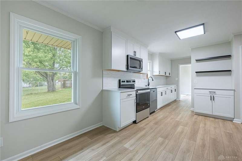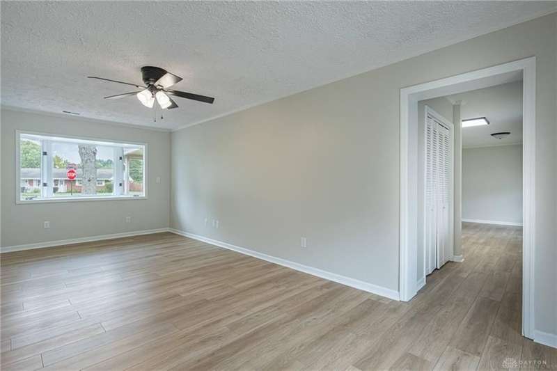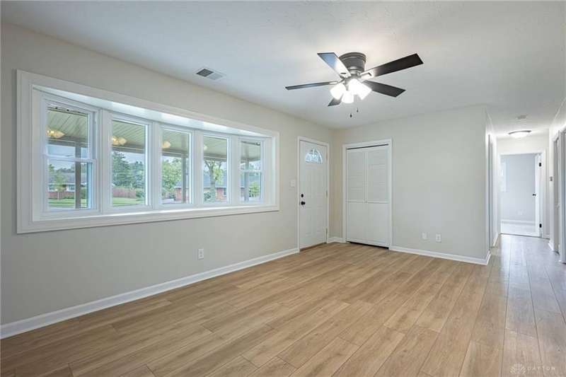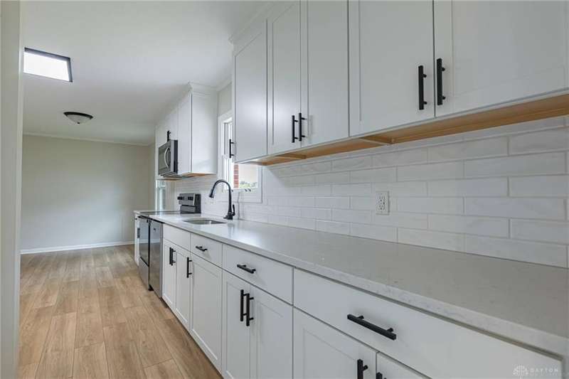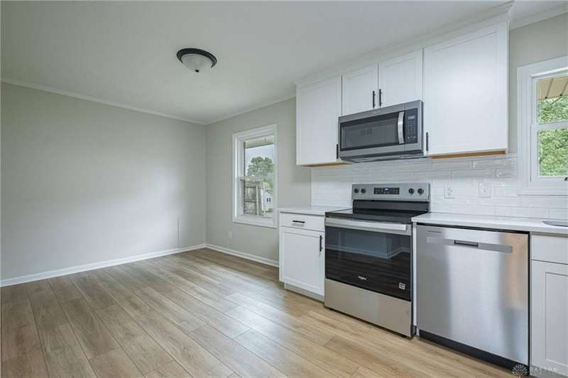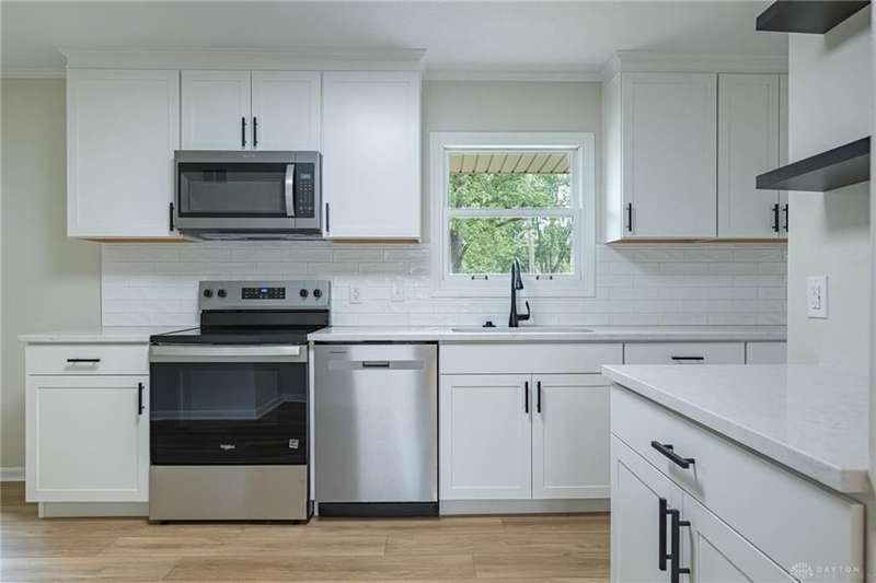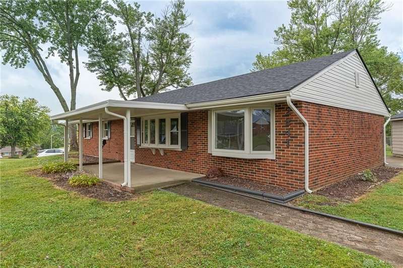 Spacious brick ranch, freshly renovated in Kettering, just 1 mile from the Greene. Living room plus huge family room walks out to rear patio, new roof on house and garage, awesome kitchen with plenty of 36" cabinets, quartz tops, stainless steel appliances and tile backsplash. New bathroom with tiled shower, covered front porch, new LVP and carpet flooring throughout, new laundry room area, huge super nice detached oversized 3-car garage with plenty of storage space! Land contract, lease purchase options available.