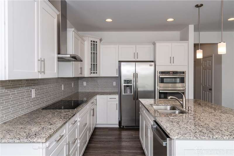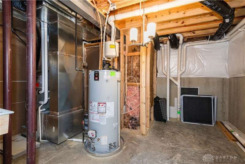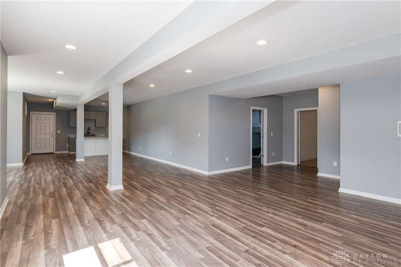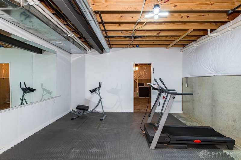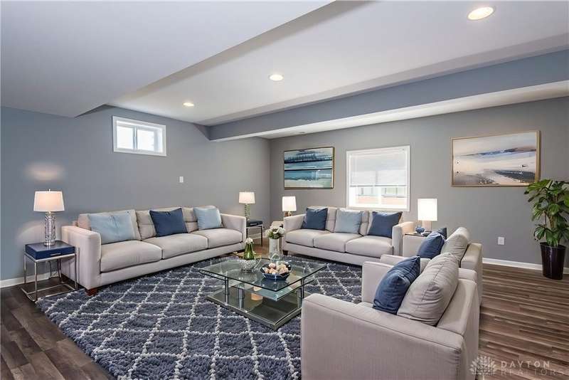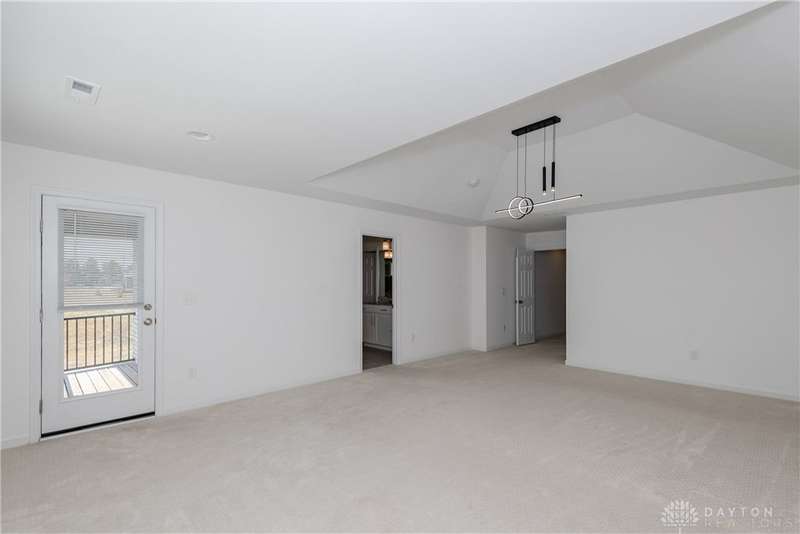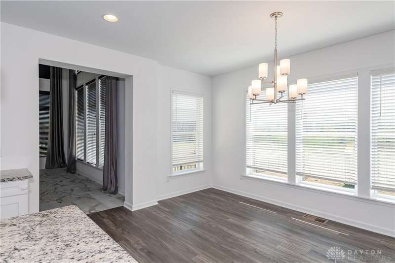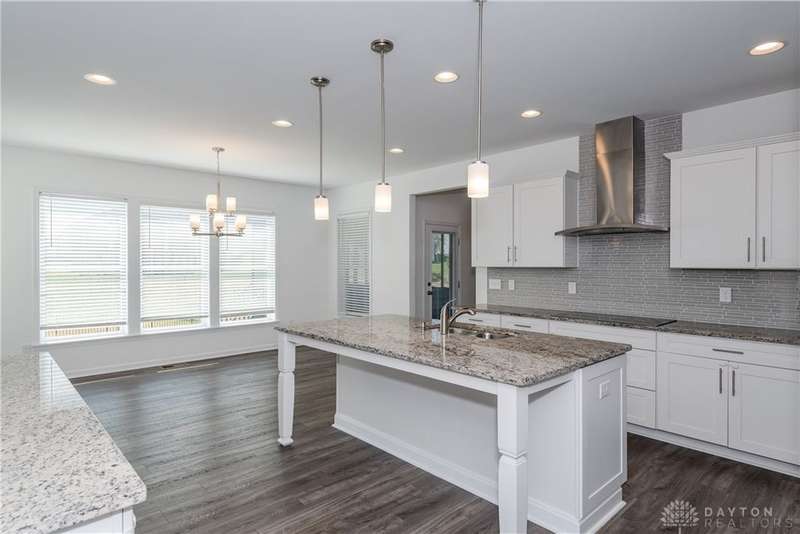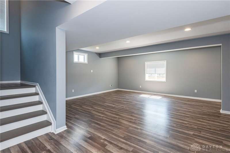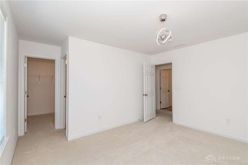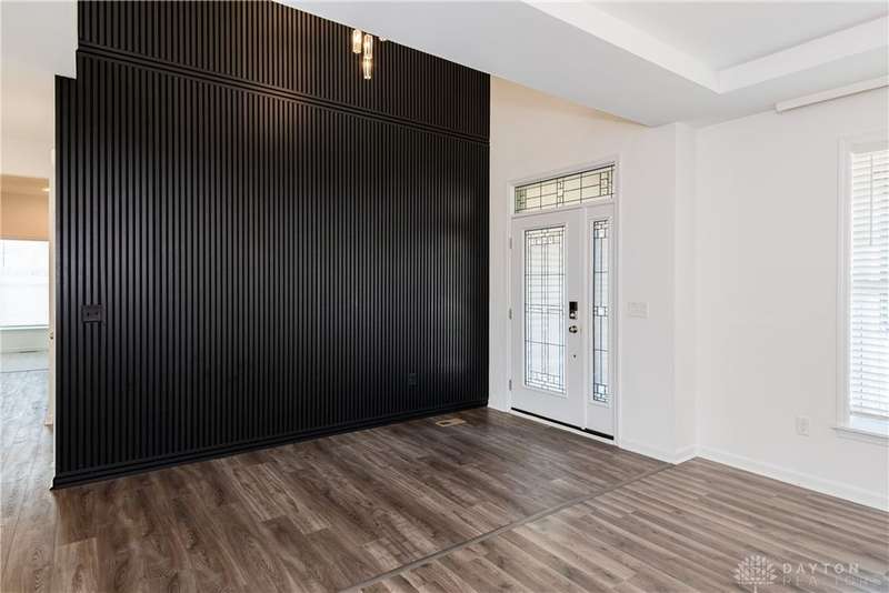 Welcome to a masterpiece of modern design, perfectly positioned on a private cul-de-sac in the premier Woodgrove subdivision. This exceptional MI Homes build from 2022 commands attention with its stunning full-brick exterior, featuring unique light-colored brick beautifully contrasted by sophisticated dark accents for incredible curb appeal. Inside, discover a sanctuary of light and space where an open floor plan is elevated by soaring high ceilings and an entire wall of large windows. The heart of the home is the magnificent great room, showcasing a custom-built tile entertainment wall with a mesmerizing color-changing electric fireplace and integrated accent lighting. The gourmet kitchen is a chef's dream, equipped with a built-in double wall oven, a countertop electric stove, a massive island perfect for gathering, and ample storage. The luxurious primary suite is a true retreat, complete with a private balcony, two spacious walk-in closets, and a spa-like ensuite with elegant double vanities and a beautifully tiled Roman shower. An elegant upstairs loft overlooks the living area below, providing a perfect flexible space for a play area, home office, or reading nook. The incredible, fully finished walkout basement dramatically expands your living space, offering a huge recreation area, a convenient wet bar, a versatile bonus room ideal for a guest bedroom or home office, and direct access to the backyard. Outside, your private oasis awaits, featuring a covered porch with storage, a stylish pergola, and a ready-to-use firepit area on a fenced lot, with property lines that extend generously beyond the fence for added space and potential. With top-rated Springboro schools just a mile away, this home seamlessly blends luxury, location, and lifestyle into an unparalleled offering.