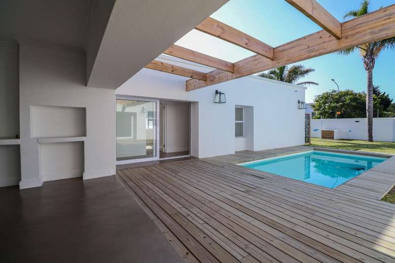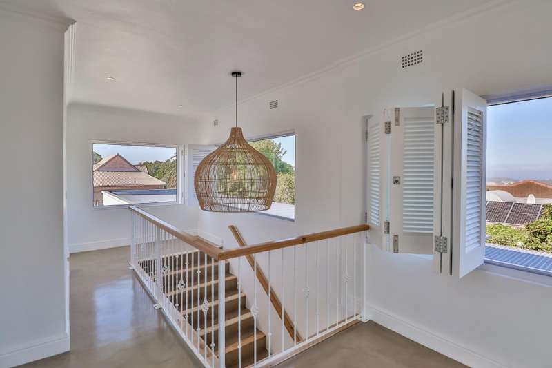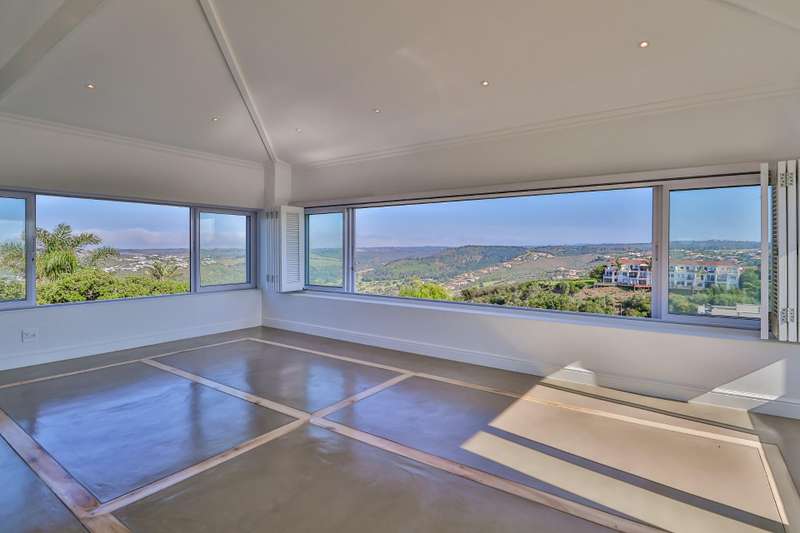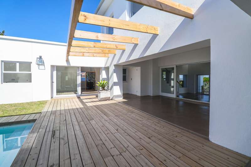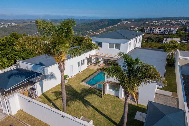 NEWLY RENOVATED HOUSE WITH FABULOUS VIEWS This beautifully renovated house is located almost at the end a very private and secure cul de sac and provides for superb valley and golf course views as well as equally spectacular sea views and awesome views of the Robberg Point Nature reserve. The design of the house allows for fabulous light on all the elevations.This is perfectly suited to a large family requirement with ample room for additional guests. Parking requirements are catered for by a double garage complemented by a double carport on the Eastern Side of the house and a single carport on the Western side of the house complete with a large, additional open boat /trailer bay, all off street. Both these areas are accessed via electric gates. Entering from either of these respective areas leads one straight into a private and sunbathed garden and swimming pool cum entertainment area. There are 3 ground-floor bedrooms in the north wing, all accessible via an internal passageway and each with its own modern en-suite bathroom. The largest of the 3 bedrooms has a full bathroom as well and its own external access, close to the single carport. The south wing consists of a double garage, a laundry room, and the 4th bedroom plus its en-suite bathroom. All four ground-floor bedrooms offer easy access to the entertaining & pool area as well as an outside shower. Large sliding glass doors lead from the outside entertaining & pool area, down a couple of steps into the spacious open-plan living area. The downstairs lounge boasts fabulous open space and light and offers polished screeded floors, a wood-burning fireplace for cozy winter evenings, and a covered patio for warm summer days. Adjacent to the lounge, the dining area is open plan to the kitchen, which offers plenty of cupboards, space for a double fridge, an eye-level oven, a gas hob with extractor fan, and a separate scullery. A flight of stairs leads from the downstairs lounge to the upstairs area, which is a truly magnificent part of the home. The main feature of the upstairs area is the incredibly spacious second lounge, which offers beautiful vistas to the north, south, and west of the home via large sliding windows. From here you can enjoy beautiful sunsets, and even absorb the drama of an approaching storm from the safety of your home. The upstairs area provides for the 5th bedroom, located on the eastern side of the house together with its en-suite bathroom, as well as a study and a guest toilet. There are ceiling fans in all the bedrooms and in the downstairs lounge, and aluminum windows and doors throughout the home. Security is provided by an electric fence. There is a staff room with en-suite shower & toilet as well as a 5000-litre water tank that provides water for the garden. This well-designed home truly caters for all one?ÇÖs needs and then some. Please call Anton Nell to arrange a viewing!