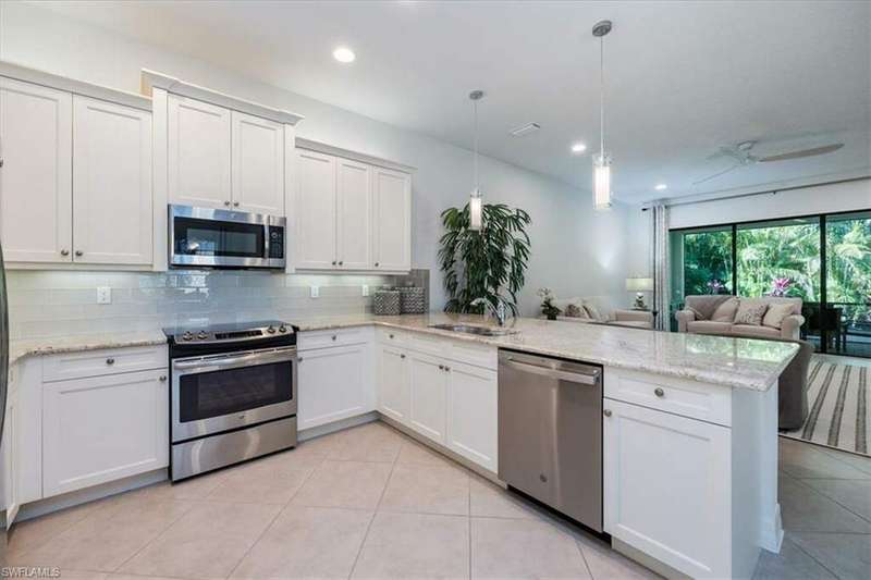 Annual Rate: $4800 & Seasonal Rate: $9600. "Live life beautifully in SW Florida" in an upgraded villa that offers the perfect combination of modern living and resort-style amenities. Located in the highly sought-after Marbella Isles community in Naples, Florida, this 2-bedroom plus den, 2-bathroom home is ideal for those seeking both comfort and convenience. Inside, you'll find high-end finishes, including sleek quartz countertops, tile and vinyl floors throughout, and stainless steel appliances in the kitchen. The spacious master suite features a king-sized bed, while the guest bedroom includes another king size bed. The den/3rd bedroom offers a full-sized bed, making it perfect for additional guests or as a home office. Enjoy the ease of a two-car garage and the tranquility of a vibrant community with exceptional amenities. Marbella Isles offers a resort-style pool, a kid-friendly pool with slides, pickleball, tennis courts, and a fully-equipped clubhouse with a kitchen and community room. Stay active and entertained with an exercise room, media room, card room, and game room featuring a pool table, ping-pong, shuffleboard, and even an Atari machine. This is a must-see property for anyone seeking the best of Naples living-don't miss out! Just 10 minutes to local beaches, 15 minutes to downtown and in the heart of Naples with shopping & dining all around you, including Tiburon the Ritz Carlton Golf Community just 2 miles away.