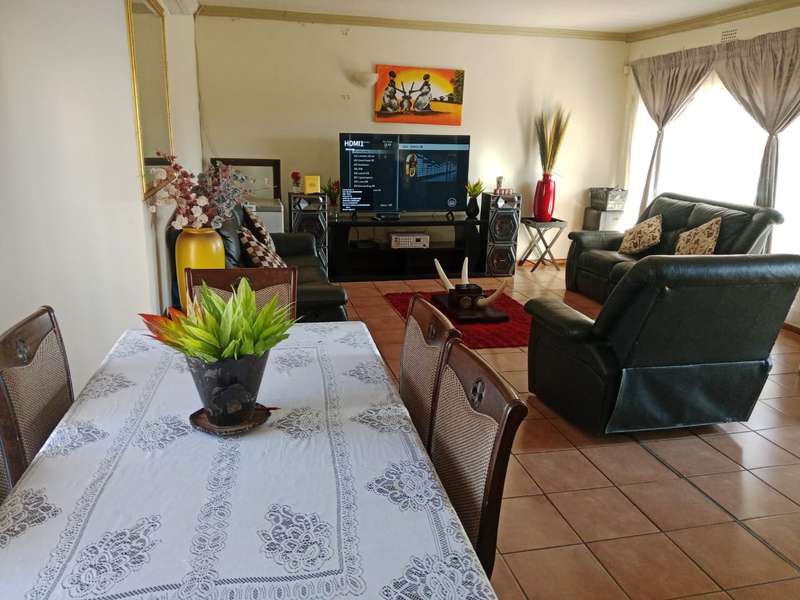 3 Bedroom Modern, spacious house For Sale: 3 Bedroom house with spacious rooms. An open-plan Kitchen, Lounge, Dining area and also a study. With build in cupboards in the bedrooms as well as the kitchen. 2 Bathrooms both full bathrooms. Outbuildings to use as/for Laundry and storage space. It has a large yard for pets and children to play, A lovely yard for those who love to do gardening and be creative. A double garage and shade net, ample parking space for up to 4 vehicles. Surrounded with devils forks around the house, a remote controlled gate, That makes it safe just for you. DONT MISS OUT!
