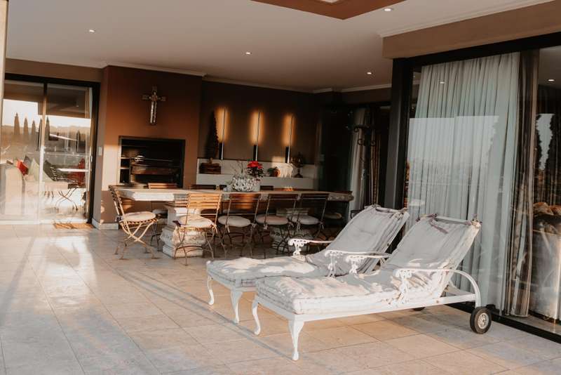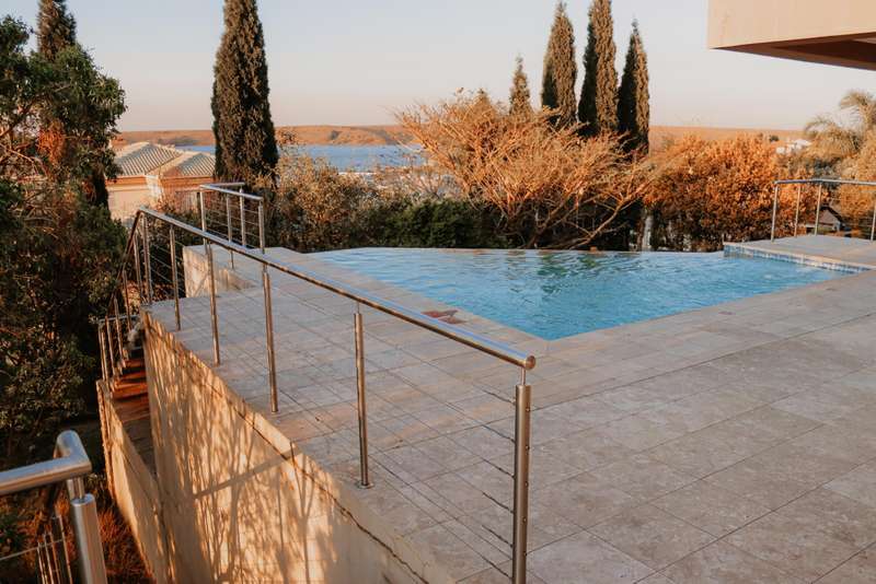 step into sophistication with this magnificent home boasting top-quality finishes throughout. Featuring 4 luxurious oversized bedrooms, 4 modern bathrooms, and a guest toilet. Kitchen with Ceaser stone tops Living room, dining room and study. Sparkling pool set in landscaped garden perfectly nestled in a quiet corner of this sought after estate.. Extra: Staff Quarters, patio and braai area Generator and water purifier to name but a few features Call now for a viewing of this splendid property- serious buyers only.