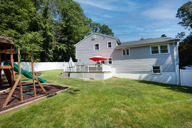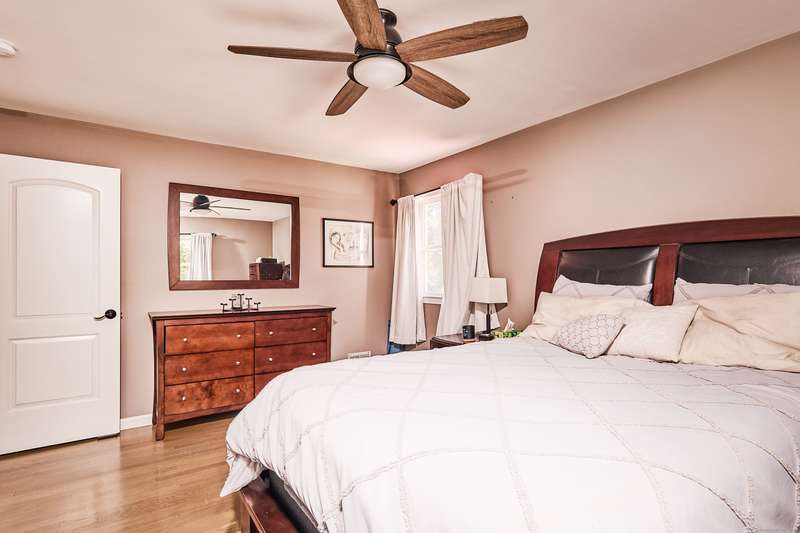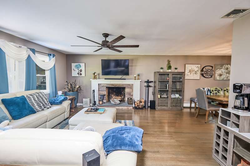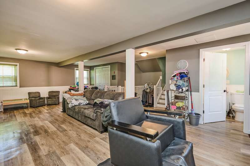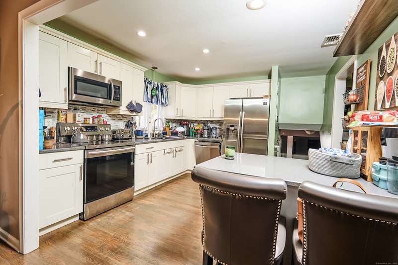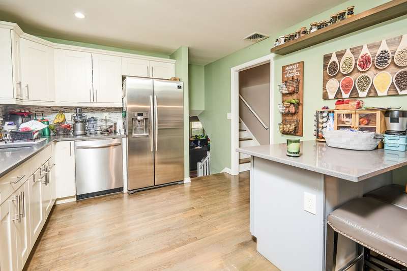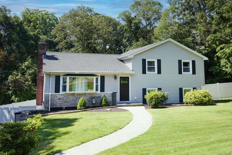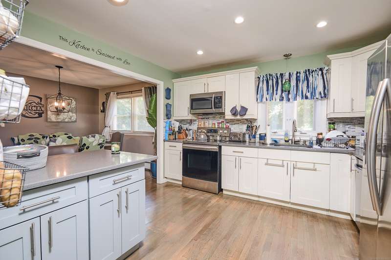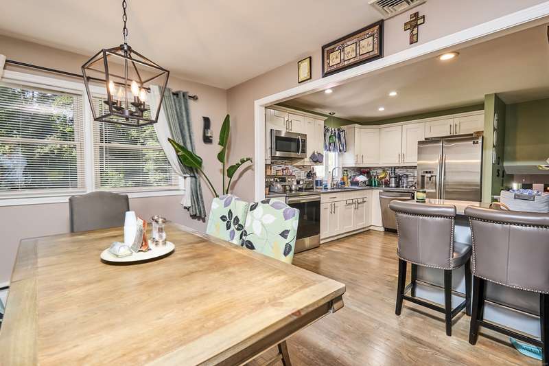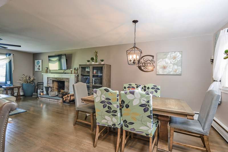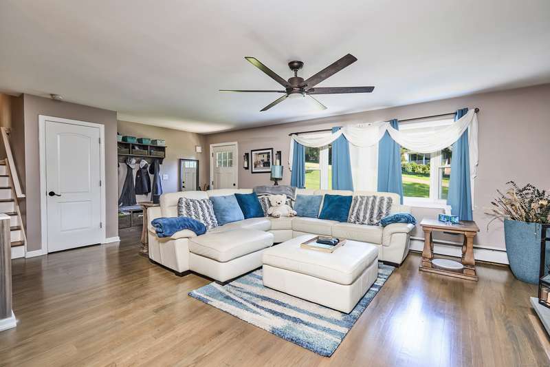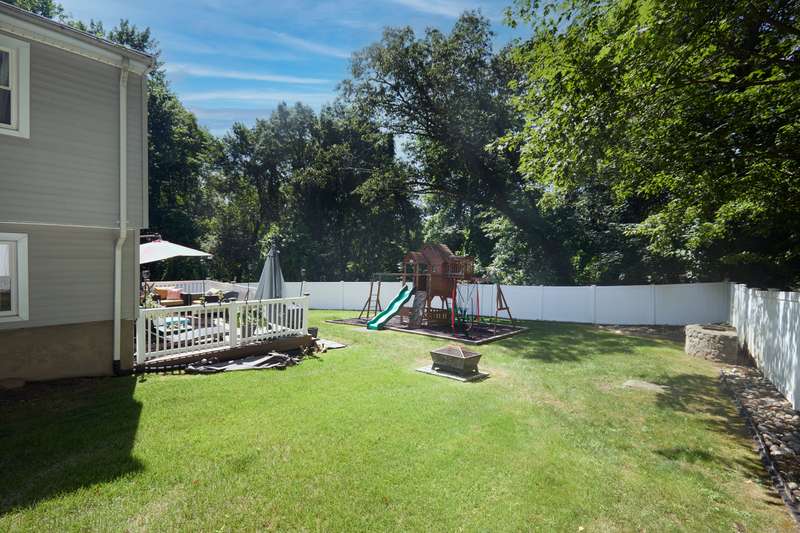 Welcome home to your renovated and completely updated home just minutes away to schools, parks/rec, town amenities, retail and shopping with easy access to all commuter routes. Open main level living area designed to entertain features formal dining area, spacious eat in kitchen with island, quartz counters and custom tile leading to 2nd level including 3 generous sized bedrooms plus full bath with designer marble flooring and tile. Large walk out family room with laundry room, 2nd full bath, oversized garage plus high efficiency Navien gas heating/hot water, central A/C, electrical, roof, siding, windows, driveway and just under an acre of fenced, private yard await you in your new home!