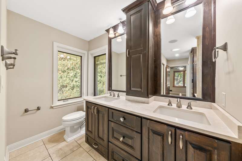 Beautiful Lannonstone ranch set on a nicely manicured lot. Updated interior with hardwood floors, cherry cabinets in the kitchen, granite countertops and two stylish baths on the first floor. The lower level awaits your finishing touches. Handsome floor to ceiling stone fireplace in the living room that includes a large set of windows and can lighting. Efficient design kitchen opens to a cozy family room that includes a wet bar. Luxurious primary suite with big walk-in shower and heated floors in the bath. Patio for outdoor fun overlooks the private yard. Great convenient location within walking distance to the quaint downtown, Village Park and Beer Garden. Elmbrook Schools are a huge plus!