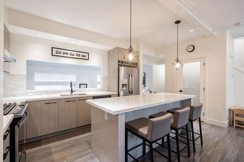 Welcome to Summit! Unit 50 features plenty of space for your family with the upgrades and luxury features you deserve! This home includes 4 bedrooms & 4 bathrooms w/2 ensuites, including a well appointed 5 piece primary bath with double sinks. This luxury kitchen is an entertainer’s dream with SS appliances, pantry, beverage fridge, quartz counters and oversize island with bar seating. Relax year-round in the incredible rooftop patio’s hot tub and enjoy mountain views and sunny skies. DBL garage features EV charging, epoxy flooring and additional built in storage shelving. Conveniently located within close walking distance to multiple elementary schools & daycare, and close to shopping, KGB & HWY 10. Don’t miss this opportunity to call this unique and immaculately well-kept home yours!
