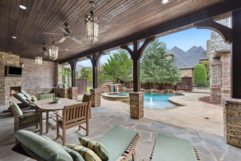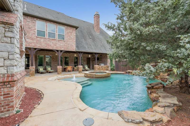 **FRESHLY PAINTED!** Welcome to this exquisite 6,123 SF residence in the gated Castleton Manor of Colleyville. This stunning property boasts a perfect blend of elegance and comfort, featuring an open floor plan that seamlessly connects spacious living areas with modern amenities. As you enter the home, you'll be greeted by high ceilings and abundant natural light, highlighting the beautiful hardwood floors. The gourmet kitchen is a chef's dream, equipped with top-of-the-line appliances, ample counter space, and generous islands perfect for both meal prep and casual dining. The adjoining breakfast nook offers a cozy spot to enjoy your meal while overlooking the lush backyard. The luxurious primary suite serves as a private retreat, with a sitting area around a stunning fireplace and a spa-like en-suite bathroom featuring a jetted tub, walk-in shower, dual vanities, and expansive closets. Additional downstairs amenities include a media room, guest suite, exercise room, executive office, and laundry room. Upstairs, a sprawling family room with a kitchenette and three generously sized bedrooms, each with access to well-appointed bathrooms, ensuring comfort for family and guests alike. Step outside to discover a spectacular outdoor space, ideal for entertaining or relaxing. The landscaped yard boasts a covered patio with a fireplace, an outdoor kitchen, and a sparkling pool and spa. Located in a prestigious neighborhood, this home is conveniently situated near top-rated schools, parks, shopping, and dining options. With its charming curb appeal and outstanding features, this residence is the perfect place to call home. Don't miss the opportunity to make this your own!