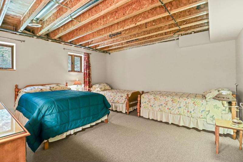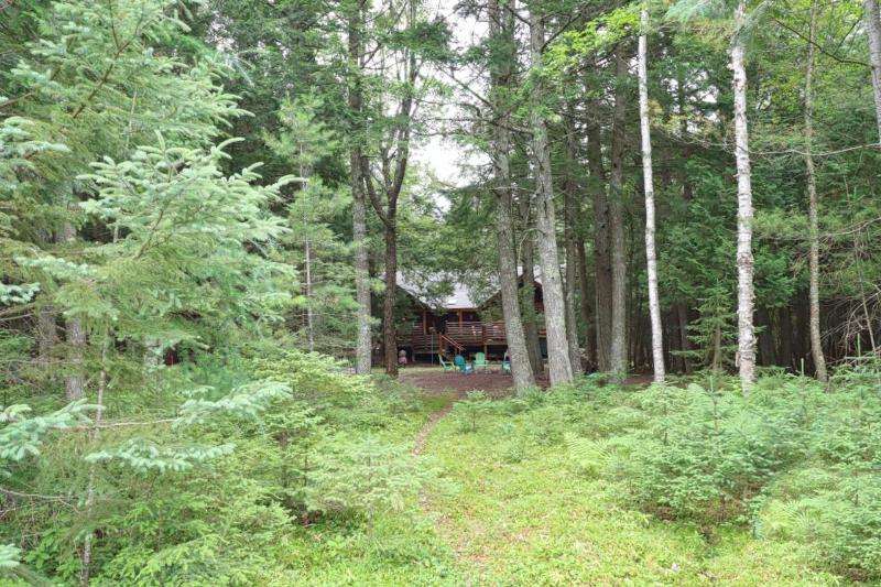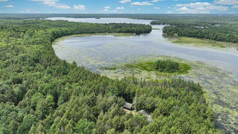 Welcome to this stunning hand-scribed, custom-designed, log home, perfectly situated on 3.42 acres on a point leading to Big Lake of the Three Lakes Chain. Surrounded by state land, this property offers a peaceful setting that is hard to beat. With over 3,900 square feet of well designed living space, this home features a main-level primary suite, a kitchen adorned with custom cabinetry, dining room, spacious two-story family room laundry area and a generously sized bedroom and bath. Upstairs are two large lofts perfect for a bunk area connected by a catwalk! The finished lower-level walkout provides extra space for guests and features a large bedroom, bathroom and rec room plus tons of storage. Enjoy the tranquility of the three-season room and the expansive deck overlooking 790+ feet of natural shoreline, the property's private trails and impressive trees.