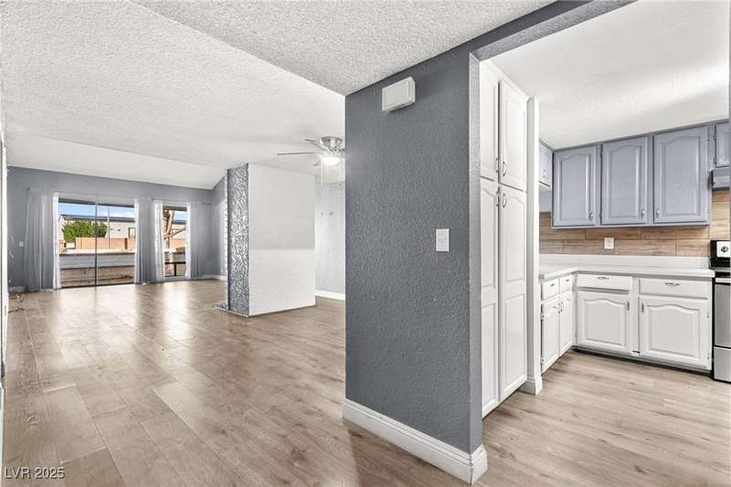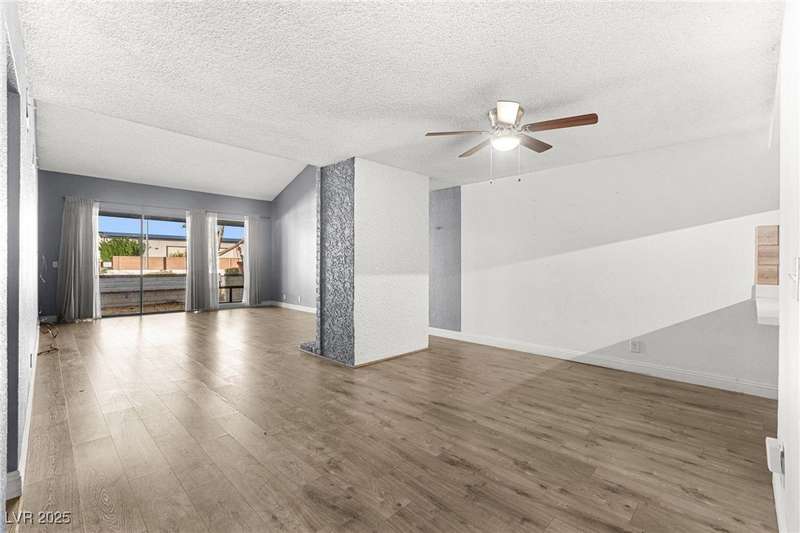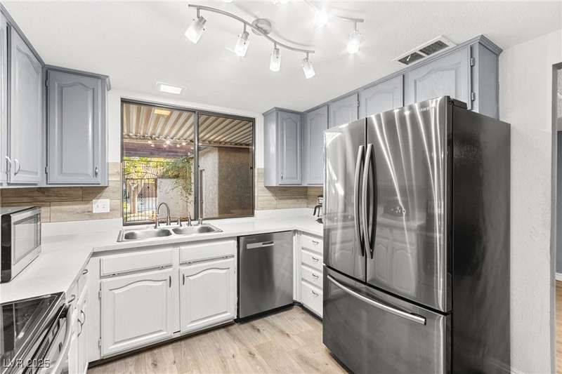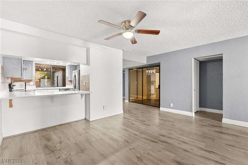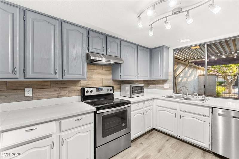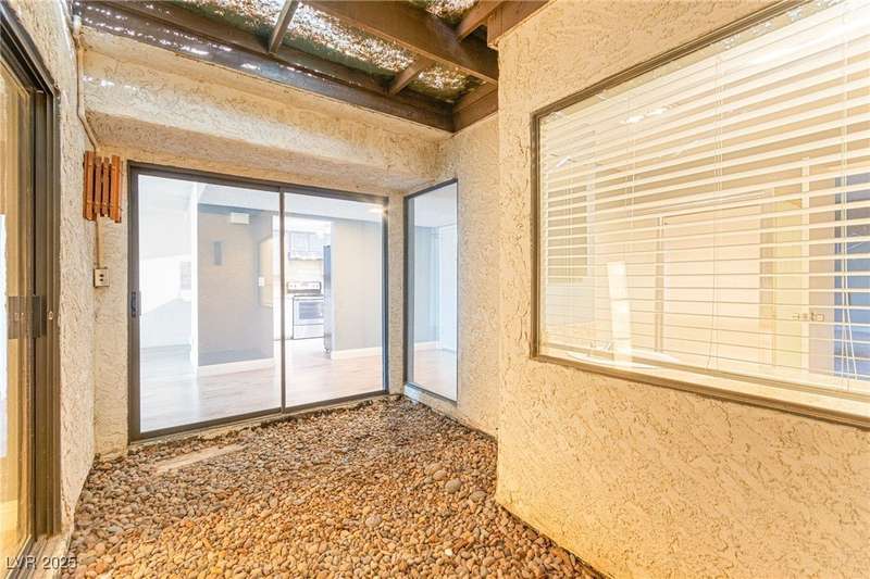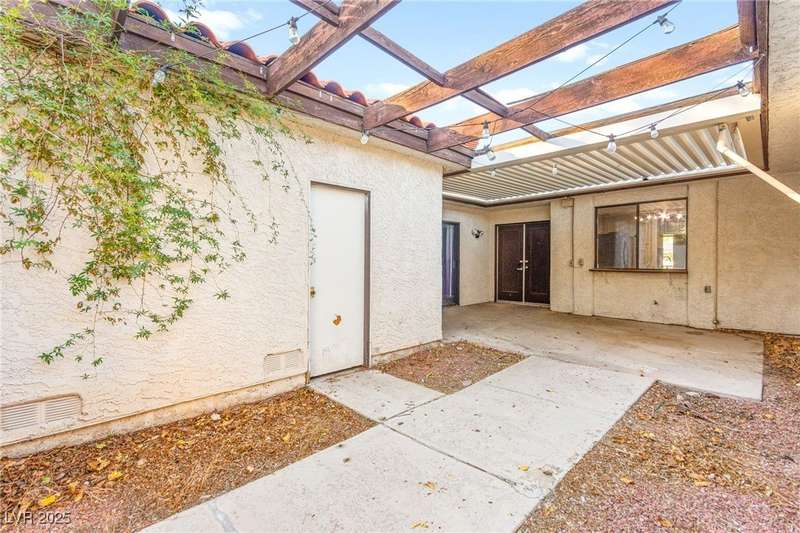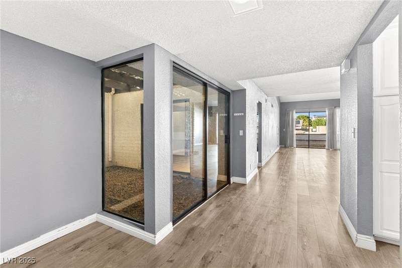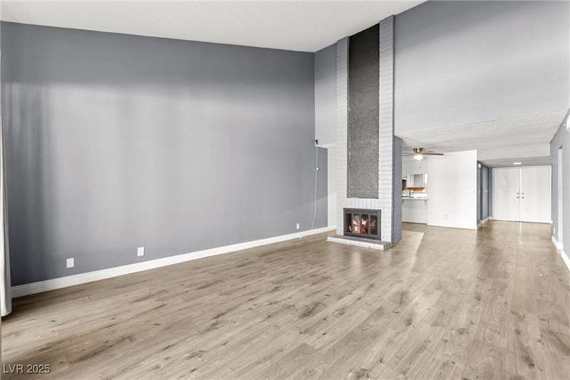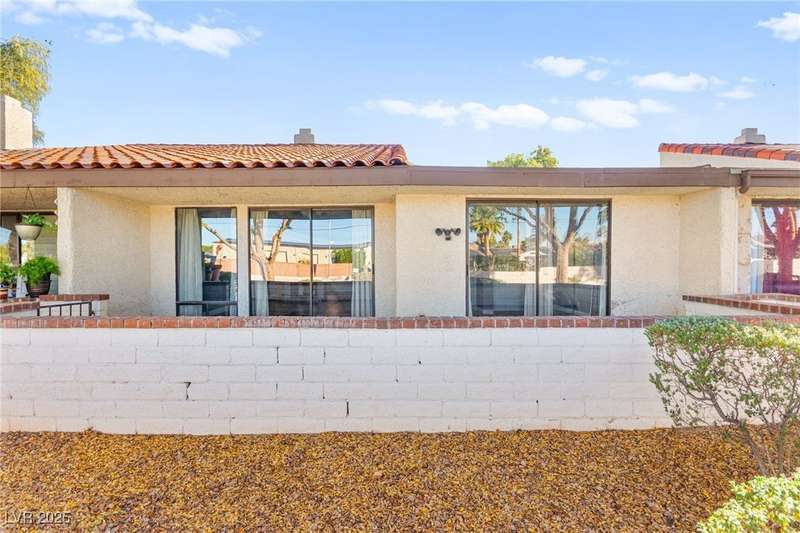 Welcome home to this stunning townhome perfectly situated in a desirable gated neighborhood featuring a sparkling community pool and relaxing spa. Enjoy the convenience of an attached two-car garage and a spacious gated courtyard entry that welcomes you inside Step into a bright, open living area highlighted by vaulted ceilings, elegant laminate flooring, and fresh two-tone neutral paint throughout. The cozy brick fireplace adds warmth and charm, while the kitchen shines with stainless steel appliances and plenty of storage. Retreat to the inviting primary suite featuring dual sinks in the ensuite bath and plenty of natural light. Outside, unwind on the covered back patio with no rear neighbors—perfect for privacy and relaxation.Located just minutes from UNLV, parks, shopping, dining, and the Las Vegas Strip, this home combines comfort, style, and an unbeatable location. Don’t miss this must-see home—schedule your tour today!
