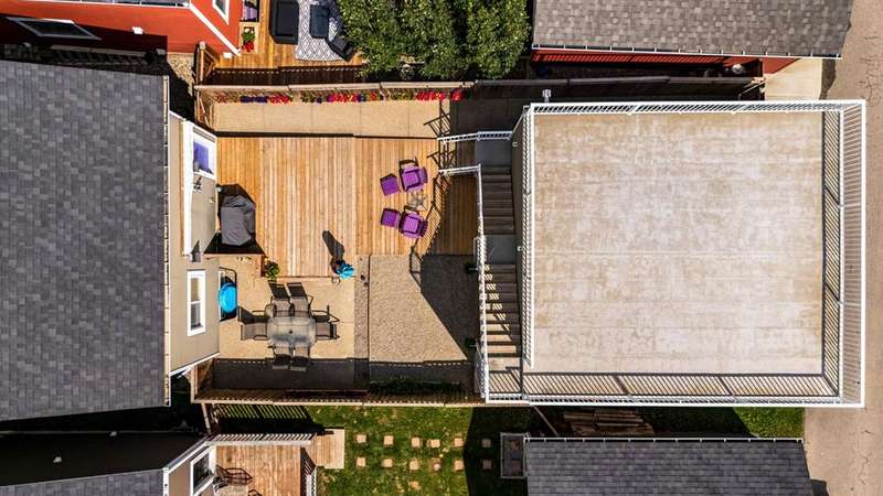 MOVE IN READY - QUICK POSSESSION AVAILABLE. Welcome TO 773 RIVER HEIGHTS CRESCENT offering exceptional value with 2231 sqft of finished living space, an OVERSIZED 23 x 25 DETACHED GARAGE WITH EXTRA STORAGE, a PROFESSIONALLY FINISHED BASEMENT, INCREDIBLE UPGRADES THROUGHOUT INCLUDING A FULLY WIRED HOME THEATRE. You'll immediately appreciate the beautiful curb appeal with a picturesque front porch perfect for those coffee mornings. Step inside to discover a FRESHLY PAINTED interior and a beautiful kitchen featuring GRANITE COUNTERTOPS, GAS STOVE WITH HOOD FAN, STAINLESS STEEL APPLIANCES, and 42" UPPER CABINETS with crown moulding. There is a thoughtful addition of a CUSTOM DOG FEEDING STATION built into the kitchen island. The kitchen and spacious dining area offer a very functional open-concept design make this the heart of the home. Upstairs, you’ll find THREE spacious bedrooms, including a primary suite with GRANITE COUNTERS, a WALK-IN ENSUITE, and a PRIVATE ENSUITE. The FULLLY DEVELOPED BASEMENT extends the living space with a FOURTH BEDROM, a large 3-PIECE BATHROOM INCLUDING A CUSTOM DUAL RAIN TILED SHOWER. You'll love movie and game nights in the dedicated theatre room—complete with PROJECTOR SCREEN and BUILT-IN SPEAKERS that stay, a $10,000 value. Additional features include 24 built-in speakers across multiple zones, upgraded lighting, a central vacuum system, and modern finishes throughout, this home checks every box for comfort and function. The OVERSIZED DOUBLE - 575 sq. ft. HEATED GARAGE with MEZZANINE STORAGE provides the perfect space for a workshop or hobby area. Outdoor living is where this home truly shines — featuring a ONE-OF-A-KIND ROOFTOP PATIO over the garage, a TIERED DECK WITH BBQ GAS LINE hookup, HOT/COLD WATER TAPS and HOT TUB READY WIRING, OUTDOOR SPEAKERS, all surrounded by beautifully landscaped front and back yards. Energy efficiency is built right in withTRIPLE-PANE LOW-E ARGON windows, a high-efficiency furnace, 50-GALLON HOT WATER TANK, and programmable thermostat. MOVE-IN READY and priced to sell with a very flexible and quick possession available. Don’t miss your chance to own this rare find in the sought-after community of River Heights that is a quick commute to the city or escape to the mountains. Conveniently close to many schools and offering beautiful walking paths with quick access to the river and many parks and playgrounds.