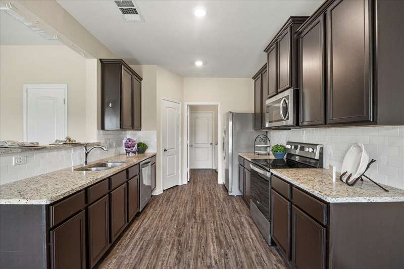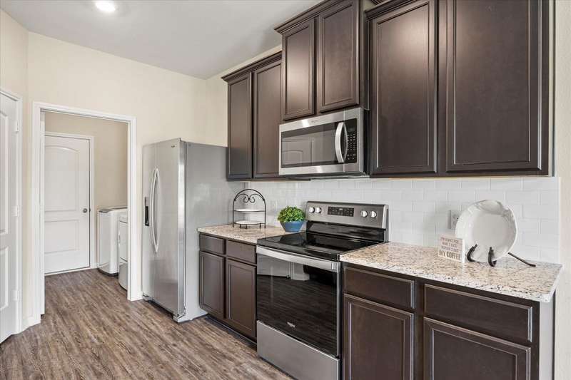 This beautiful 2 story, 4 bedroom, 2.5 bath home is nestled on a large corner lot in the sought after neighborhood of Park Trails. The home boasts wonderful luxury vinyl plank floors, energy efficient appliances, granite counter tops, a large walk in pantry, and designer wood cabinets. The 1st floor master suite showcases gorgeous bay windows, a large ensuite bath with dual sinks, a separate shower, and a huge walk in closet. Three additional bedrooms are located upstairs and offers plenty of room for the whole family. The large fenced backyard is perfect for fun family gatherings and tons of room for the pups to play.! Washer, dryer and fridge is included. Just 7 miles from Lake Lavon, this one has it all! Princeton ISD.