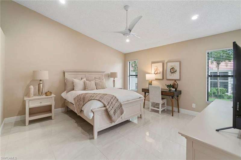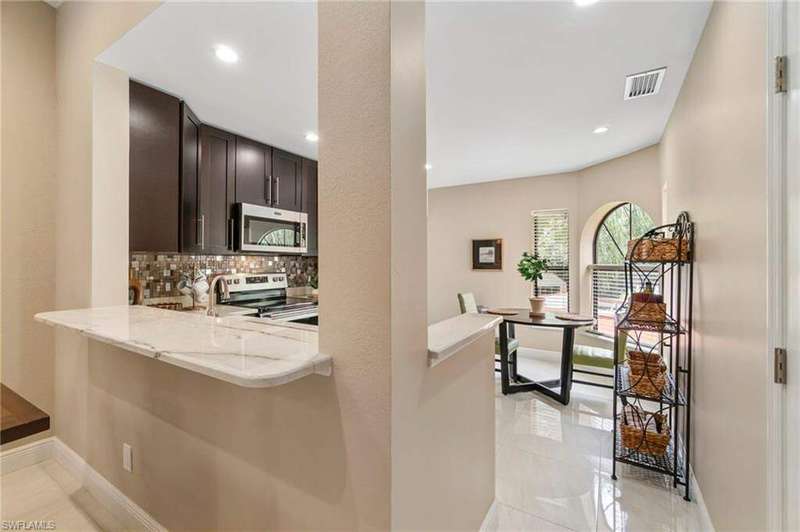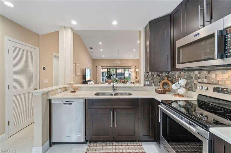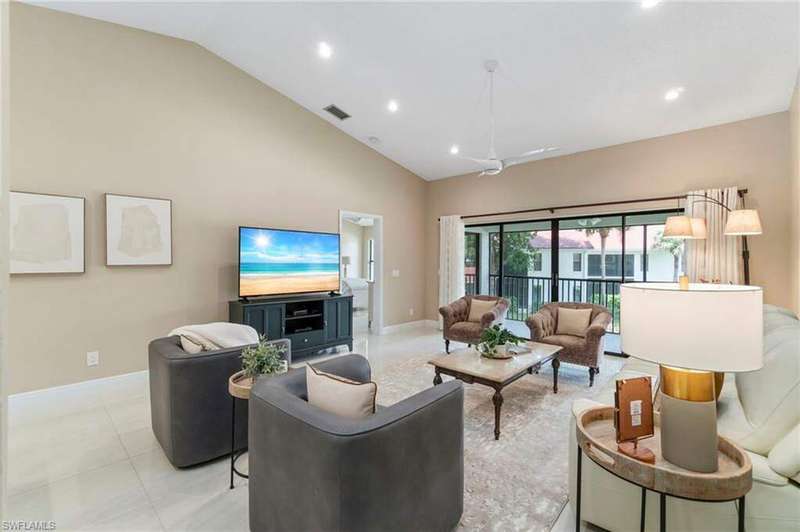 Welcome to Serendipity at Pelican Bay, where coastal charm meets a relaxed, resort-style lifestyle. This beautifully renovated 2-bedroom, 2-bath condominium offers 1,300 sq ft of stylish living space and a coveted gorgeous view of the sparkling pool framed by lush tropical landscaping. Located on the second floor, the vaulted ceilings and abundant natural light create an airy, open feel. The chef's kitchen features custom cabinetry, quartz countertops, stainless steel appliances, and a bright breakfast nook. The spacious living and dining areas flow seamlessly to the private screened lanai-perfect for morning coffee or evening cocktails with a tranquil poolside backdrop. The serene primary suite boasts a walk-in closet, updated, spacious bathroom with dual sinks and separate powder room and shower, and lanai access, while the guest suite and second full bath offer privacy for visitors. Recent upgrades include a new HVAC system and complete re-piping for peace of mind. Serendipity is a pet-friendly, non-gated, 66-unit low-rise community on the Gulf of Mexico in the south end of Pelican Bay. Residents enjoy two pools with whirlpool spas, gas grills, a newly renovated clubhouse with kitchen and community library, assigned covered parking, and abundant guest parking. Known for its warm and welcoming residents, Serendipity offers a friendly, social atmosphere with regularly scheduled events during season. As part of Pelican Bay, you'll also have access to world-class amenities: private beachfront access with tram service, two beachfront restaurants, beach chair and cabana service, tennis courts, fitness facilities, and miles of scenic walking and biking paths. All of this is just a short stroll to the Pelican Bay berm, Artis-Naples, the Baker Museum, Waterside Shops, and fine dining. Offered turnkey furnished-move right in and start enjoying the best of Naples living.