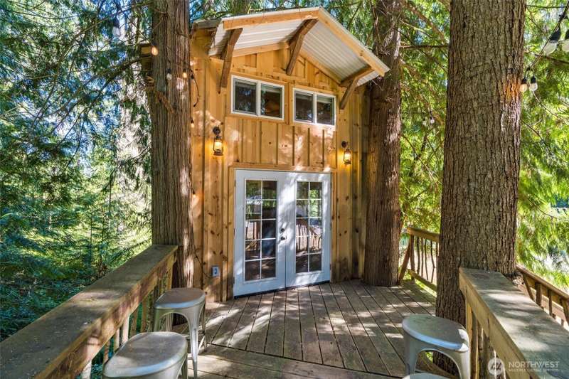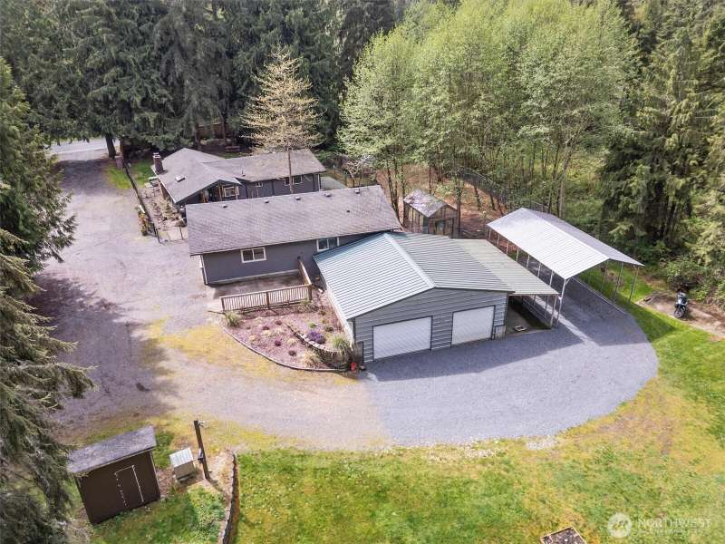 Snohomish Acreage w/ ADU & finished Treehouse! 2+ acres, updated pan abode home, 32x28 Shop, Garage & RV Carport. Hobby farm ready w/ greenhouse, chicken coop, woodshed & more. This property is a tranquil forested experience. Updates include kitchen & bath remodels, water filtration system, fencing, etc. Pre-inspected for peace of mind. Ask for Report & UPDATES List. Custom-built log style home welcomes you into a comforting layout that includes kitchen, dining, & living room on main level + 3 rooms & 2 bathrooms. Downstairs sports a large private suite. 664 sqft ADU lives large w/ living room, full kitchen, bed & bathroom. Huge area for home gym, storage, etc under ADU. Wired for generator. New electrical in shop. Don't miss the Treehouse!