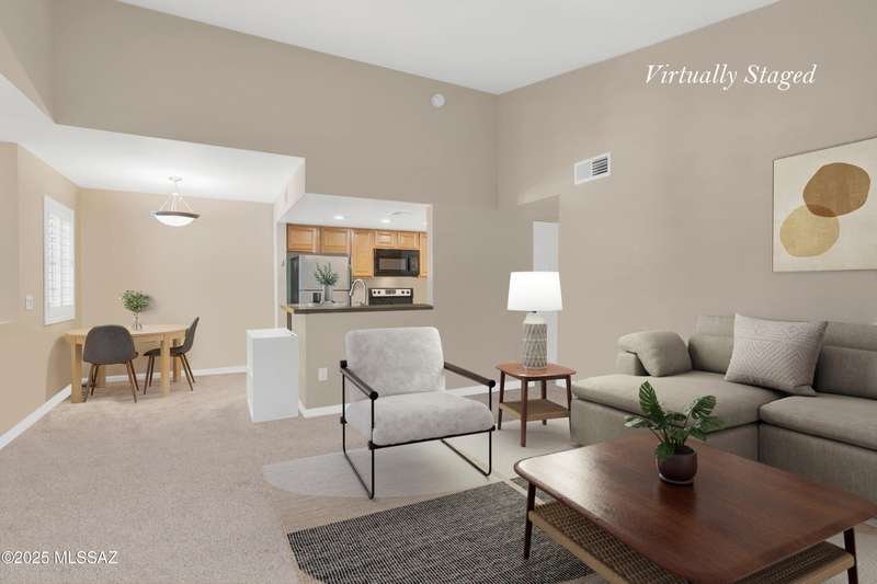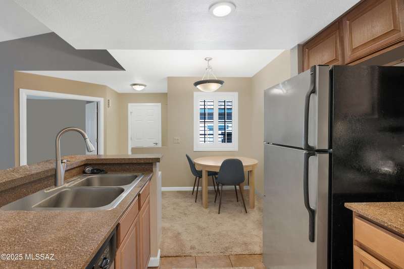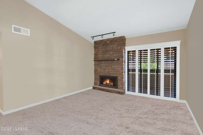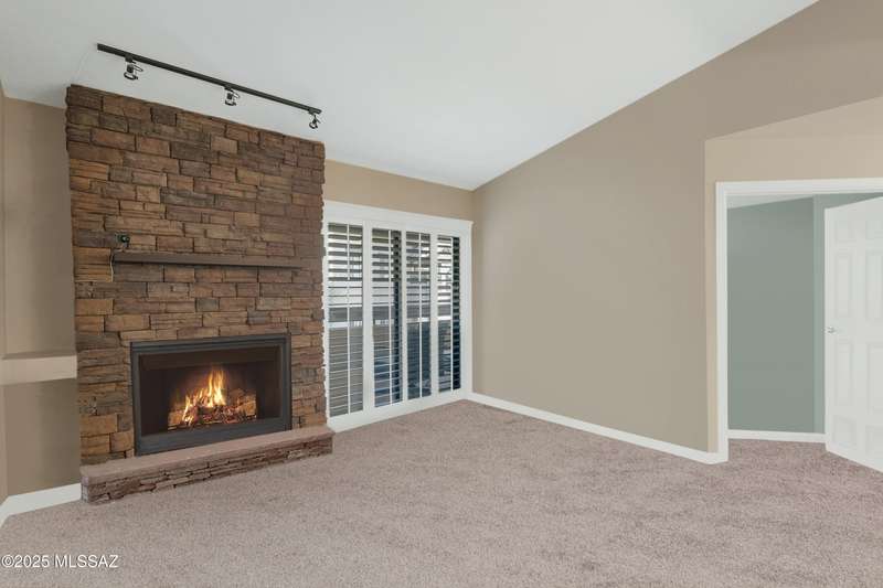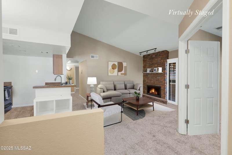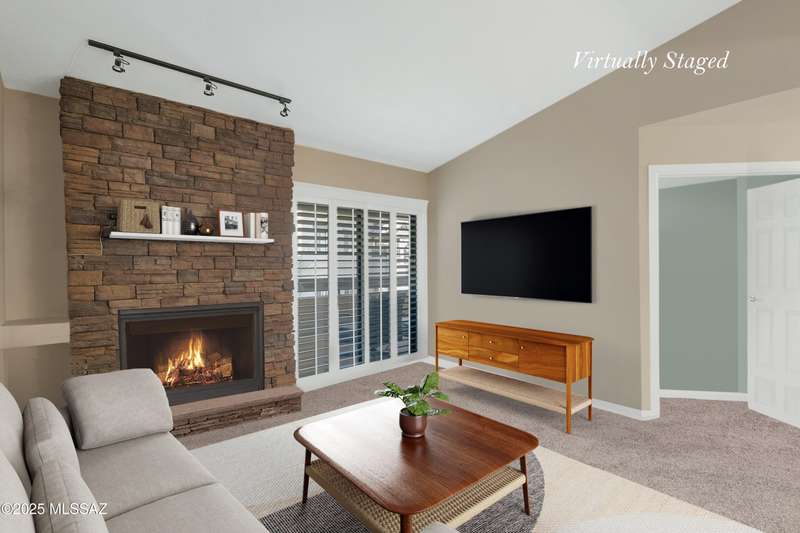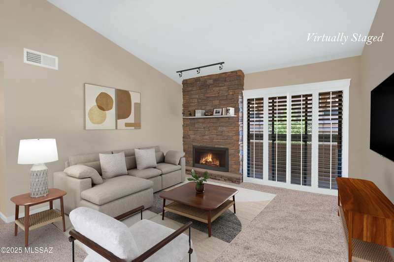 Welcome to this stunning 3-bedroom, 2-bath, 1,113 sq. ft. condo located in the exclusive Moonrise at Starr Pass community-where luxury desert living meets modern comfort. Nestled within one of Arizona's most breathtaking desert landscapes, this beautifully maintained second-level condo offers elegance, serenity, and convenience all in one.Step inside to an inviting open-concept living area highlighted by vaulted ceilings and a showstopping stacked stone fireplace, creating a warm yet sophisticated atmosphere. The kitchen features granite countertops, stainless steel appliances, and a breakfast bar, perfect for casual dining or entertaining guests. Elegant plantation shutters throughout provide privacy and light control, while the neutral tones and plush carpeting make this home move-in