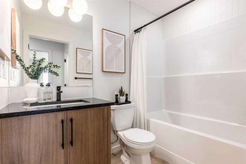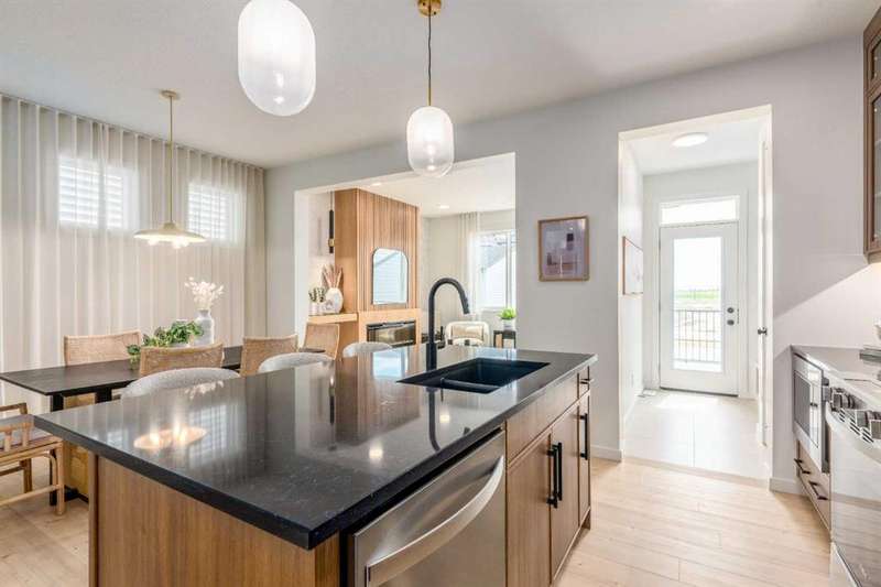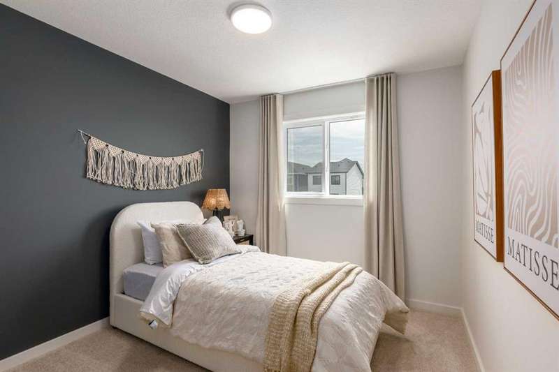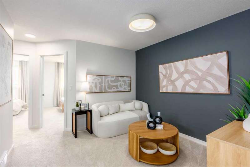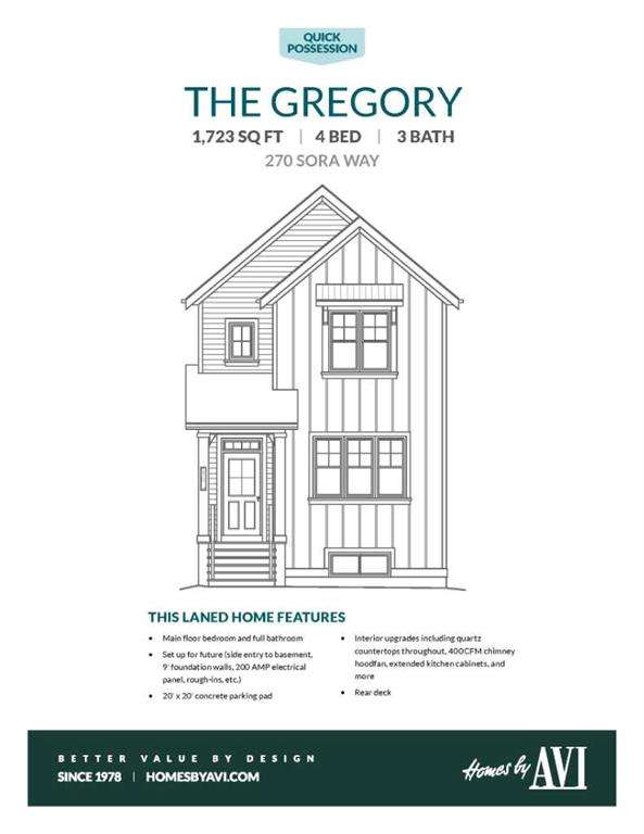 A MAIN FLOOR BEDROOM WITH A FULL BATH means grandparents or overnight guests don’t have to climb stairs. A SIDE ENTRY to the basement means future development is already set up. A 200 AMP PANEL means electric cars, workshops, and whatever else the next decade throws at you. THIS ISN’T JUST 1,723 SQUARE FEET — IT’S A HOME WIRED FOR EVERYDAY EASE NOW, AND READY FOR MORE LATER. Inside, the main floor keeps the rhythm practical but polished. Nine-foot ceilings stretch the sightlines while luxury vinyl plank flooring anchors the space in warm wood-tones. The kitchen layers style onto function: oxford grey cabinets, extended to 48", meet a smoky backsplash in a stacked subway layout, while QUARTZ COUNTERS stay as durable as they are calm. A SILGRANIT UNDERMOUNT SINK, built-in microwave, and 400 CFM CHIMNEY HOOD FAN ensure the details perform as well as they photograph. Groceries land directly in the pantry; dinner carries seamlessly to the dining area and living room, where a 50" ELECTRIC FIREPLACE feature wall sets the tone. The main floor bedroom lives just off the front of the home, with its own 3-piece cheater ensuite — perfect for aging parents, guests, or a tucked-away office if that’s what the season calls for. Upstairs, three more bedrooms flank a CENTRAL BONUS ROOM that truly works like a second living room. The master bedroom raises its ceiling height for an airy feel, paired with a walk-in closet and ensuite tiled in soft tones. Laundry lands upstairs too, so weekend chores don’t turn into stair marathons. Beneath it all, a full basement waits — 9' FOUNDATION WALLS, bathroom rough-ins, bar/kitchen sink rough-in, second laundry rough-in, and a SEPARATE SIDE ENTRY already in place. Think income potential, multigenerational ease, or simply future flexibility. Out back, a 20' x 20' CONCRETE PARKING PAD is garage-ready, and the yard comes sodded in front so you can get straight to weekend plans instead of topsoil. Life in Sora means you’re tucked just off Stoney Trail SE, with quick connections in every direction. Parks and pathways stitch through the community, playgrounds are already in, and a growing list of amenities is planned to scale with the neighbourhood. It’s an early-entry opportunity in Calgary’s southeast — a place where you can grow into both the home and the community. Ready for a quick possession? Book a showing at 270 Sora Way SE and see how well this home balances today’s comfort with tomorrow’s potential. • PLEASE NOTE: Photos are of a finished Showhome of the same model – fit and finish may differ on finished spec home. Interior selections and floorplans shown in photos.